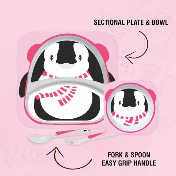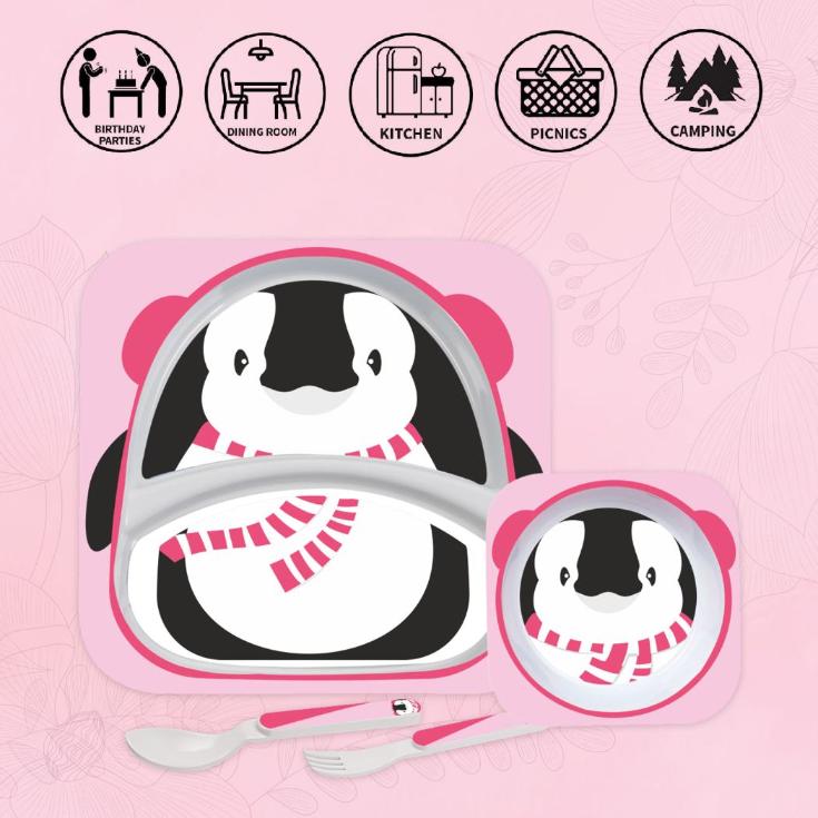 Introducing the Cello Kidzbee Kids Meal Set - a delightful dining experience for little ones! Crafted with care, this set features an adorable pink penguin design that's sure to capture kids' hearts. The heightening design of the plate ensures stability, preventing accidental spills on smooth surfaces. Made from high-quality melamine, it guarantees safety and hygiene during mealtime adventures. Lightweight and adorned with charming animal prints, this meal set quickly becomes a kid's favorite. Each set includes a plate, kids bowl, fork, and spoon, all boasting unique patterns that add a touch of whimsy to every bite. Ideal for gifting to friends, family, or colleagues, the Cello Kidzbee Kids Meal Set combines functionality with cuteness to make mealtime enjoyable and exciting.