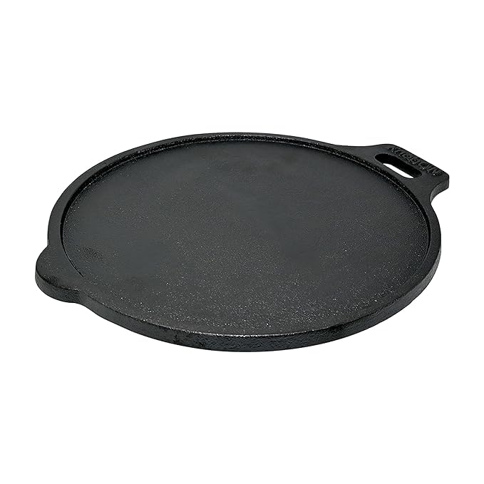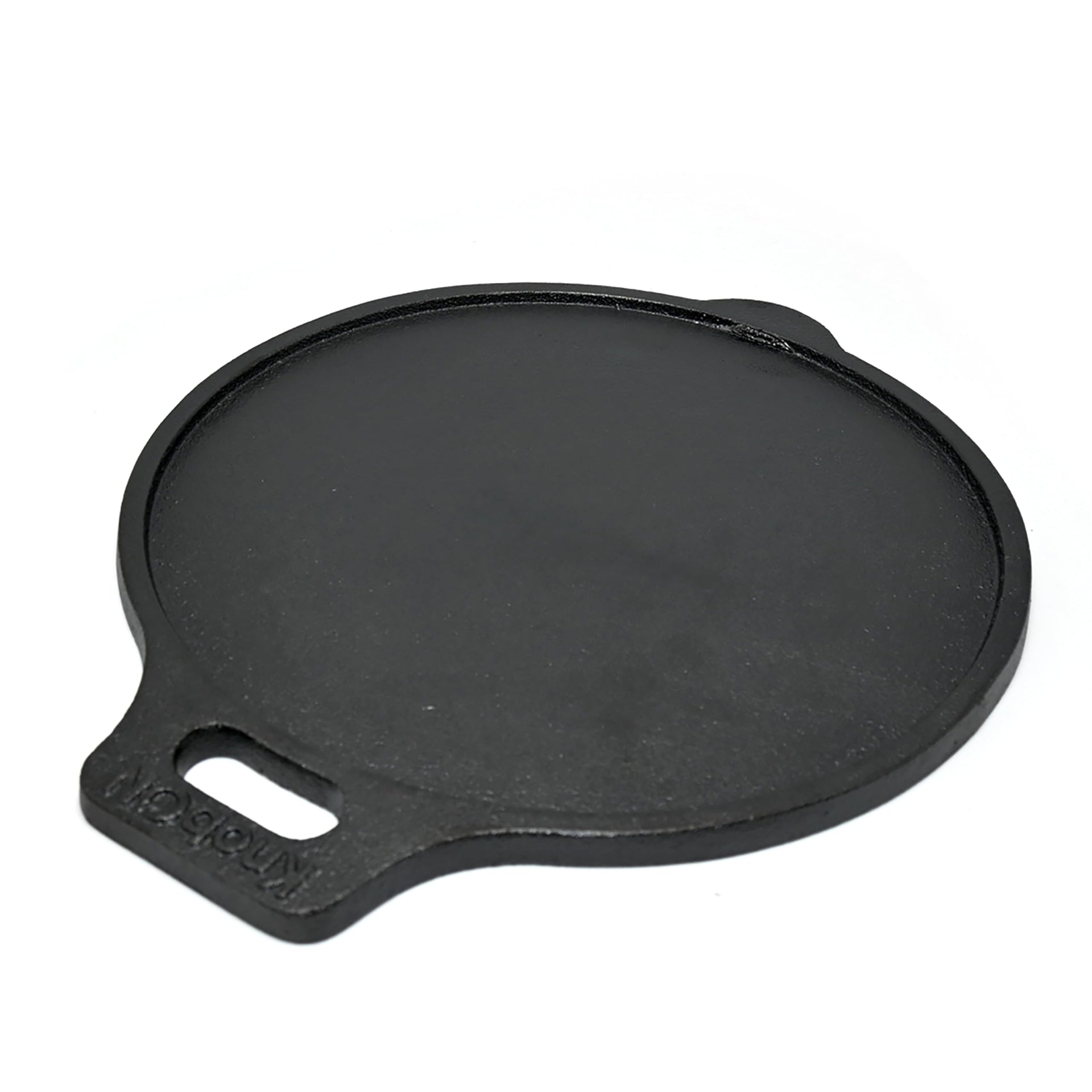 KnobON Pre-Seasoned Cast Iron Flat Dosa/Roti/Paratha/Uttapam Tawa Pan with 2 Side Handle, Dosa Kallu, Iron Tawa Big Size Non-Toxic Cookware Utensi | Gas and Induction Compatible | 27cm, Black