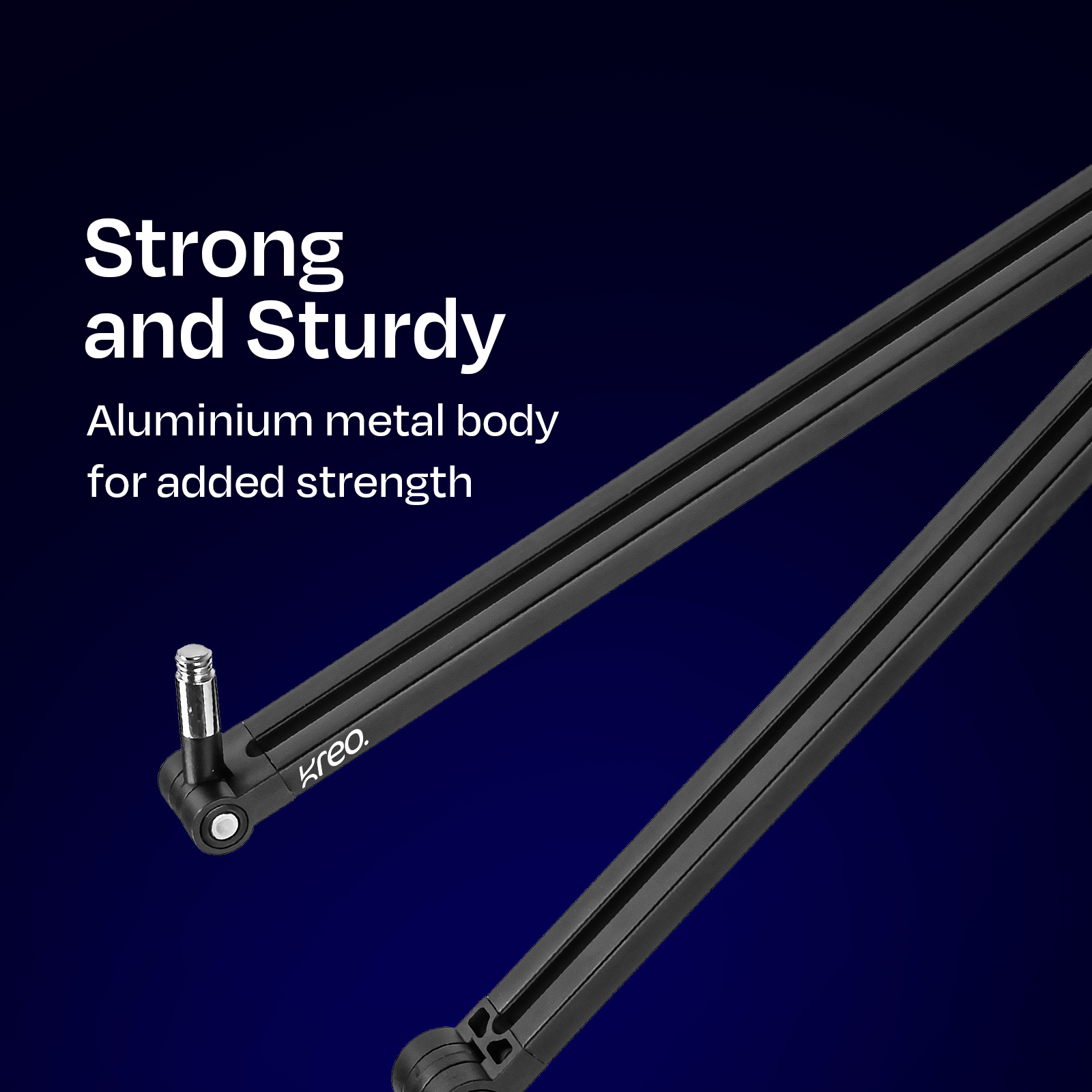 - Sturdy, Stable and Lightweight Boom Arm. Our Boom arm is made of high grade aluminum with a Sturdy C clamp for long usage. Works with mics of weight up to 2 kgs.