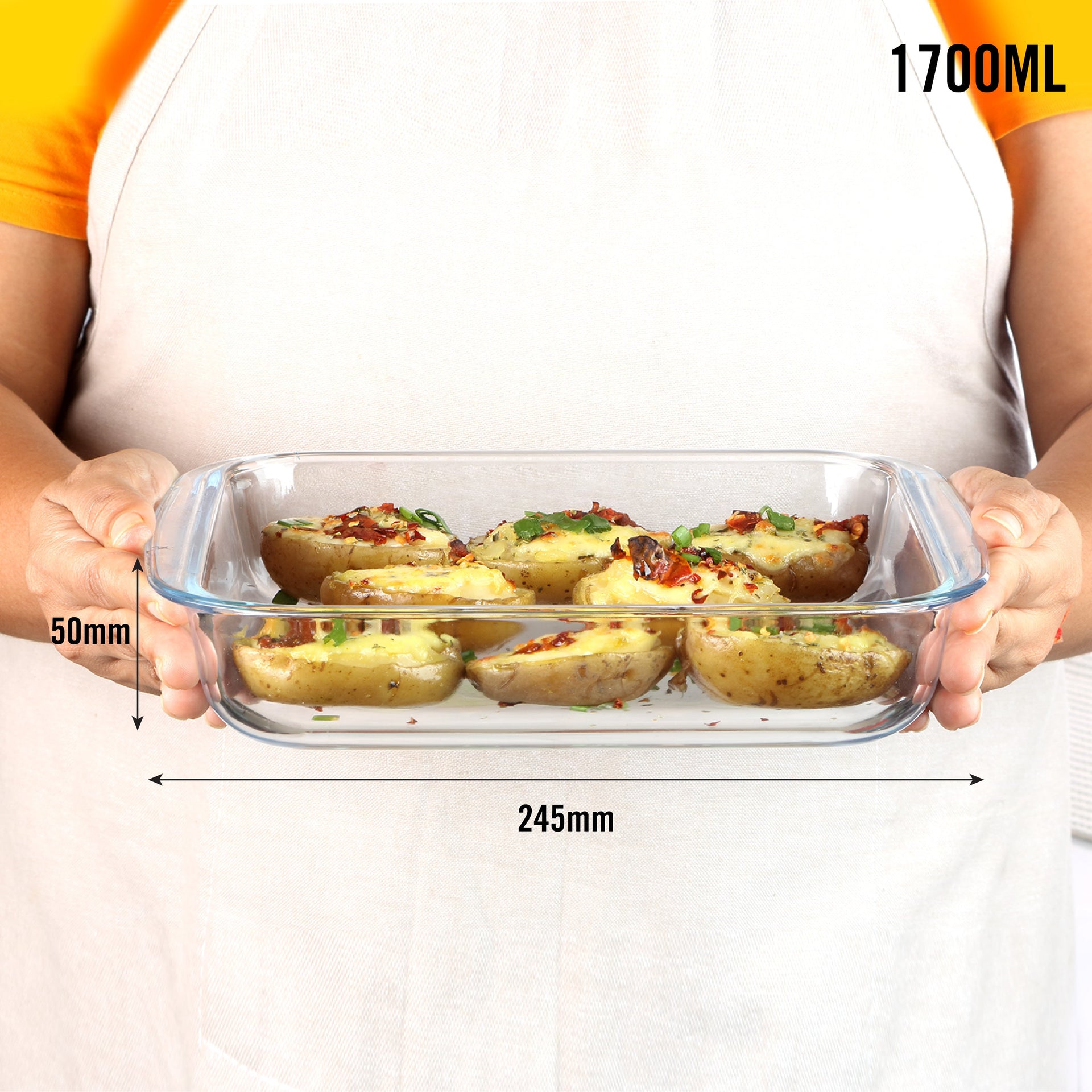 Introducing the Laura Square Glass Baking Dish, a versatile and essential addition to your kitchenware collection. With a generous capacity of 1700ml, this square glass baking dish is designed to meet a wide range of culinary needs. Crafted with clarity in mind, its crystal-clear glass not only showcases your culinary creations beautifully but also makes monitoring the baking process a breeze. Whether you're whipping up a batch of savory lasagna, a delectable casserole, or a delightful dessert, this baking dish is your reliable companion. Its square shape adds a touch of elegance to your presentation, making it ideal for both everyday meals and special occasions.
