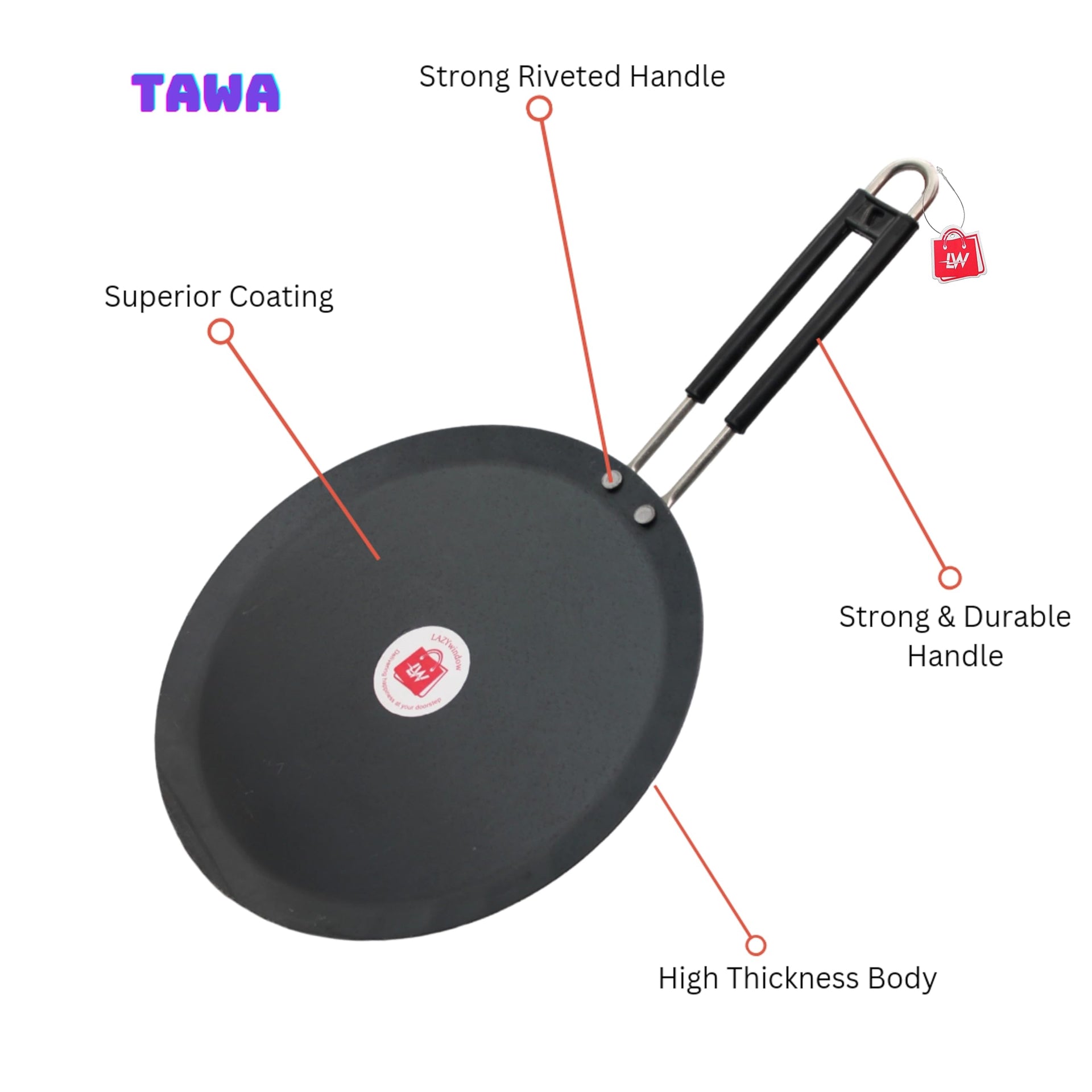 LAZYwindow Induction Base Flat Iron Tawa with Insulated Handle