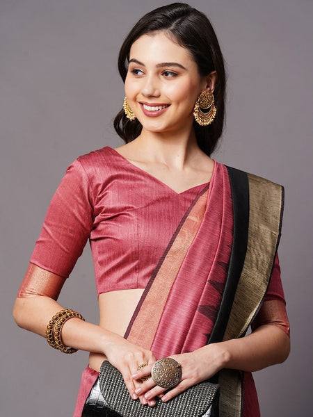 Mauve & Gold-Toned Silk Cotton Banarasi Saree