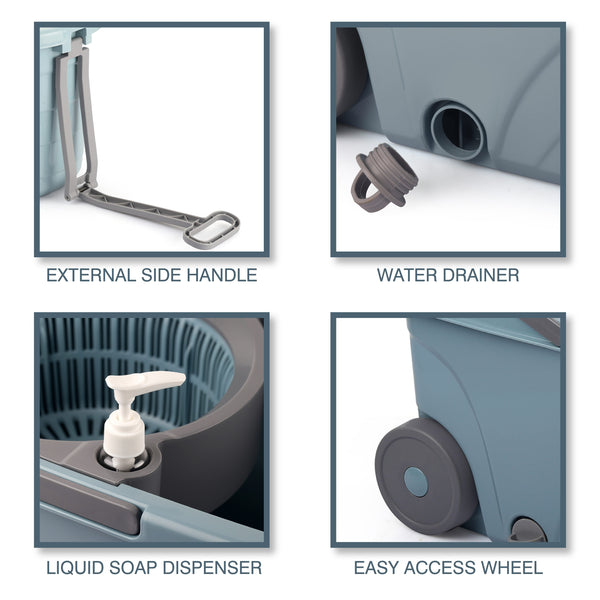 Introducing Kleeno by Cello's Max Clean Spin Mop Bucket with Soap Dispenser, a revolution in home cleaning. Crafted from premium quality plastic, this mop bucket is not just functional but a stylish addition to your cleaning arsenal, available in elegant Grey and Beige hues. The secret lies in its microfiber magic, designed to delve deep into the nooks and crannies, effortlessly lifting and trapping even the finest dust and dirt particles. But what truly sets Max Clean apart is its soap dispenser feature, allowing you to infuse your cleaning solution directly into the water. Say goodbye to messy hands with the convenient water outlet plug for easy drainage. The Max Clean's wringer bucket is the real hero, wringing out excess water from your mop without any manual effort, making home cleaning a breeze. Kleeno by Cello - Where innovation meets cleanliness.