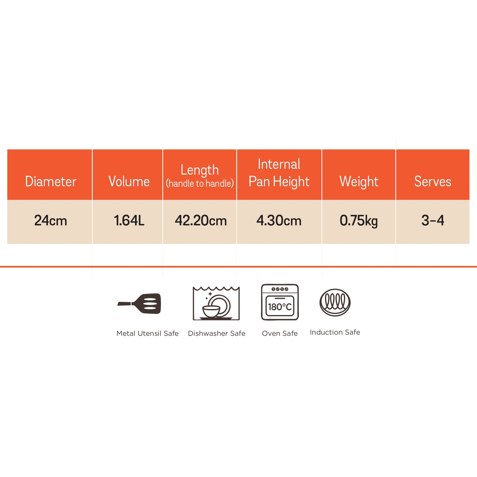 Meyer Merlot Aluminium Non-Stick Frypan | Frying Pan | Omlette pan | Fry pan with Stick Handle | Small Pan | Egg Pan | Gas and Induction Compatible| 100% Toxic Free, 24cm/ 1.64 Liters