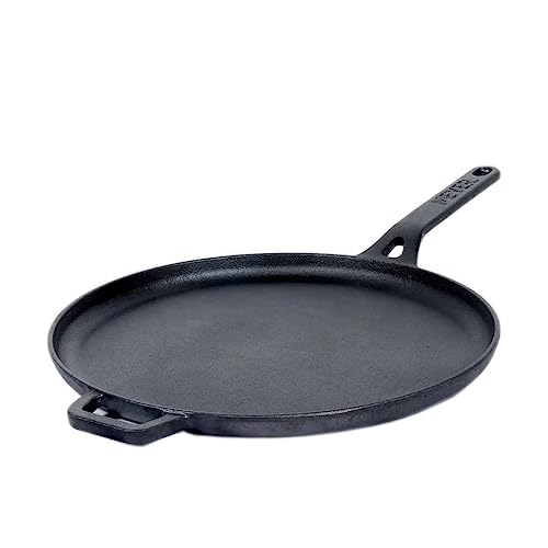 Meyer Pre-Seasoned Cast Iron Flat Dosa, Roti, Chapati Tawa Pan with Stick Handle, Dosa Kallu, Iron Tawa Big Size | Pre-Seasoned Iron Cookware | Gas and Induction Compatible | 28cm, Black
