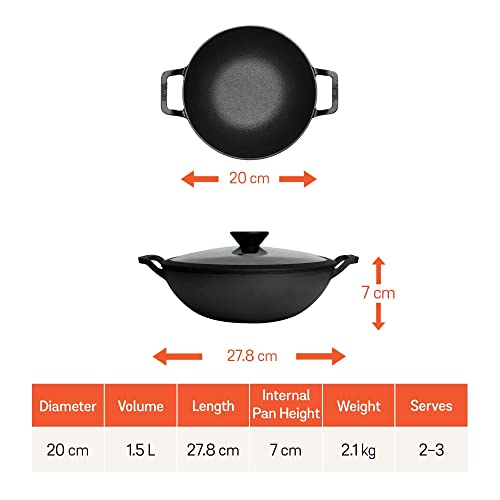 Meyer Pre Seasoned Cast Iron Kadai 20cm, Black