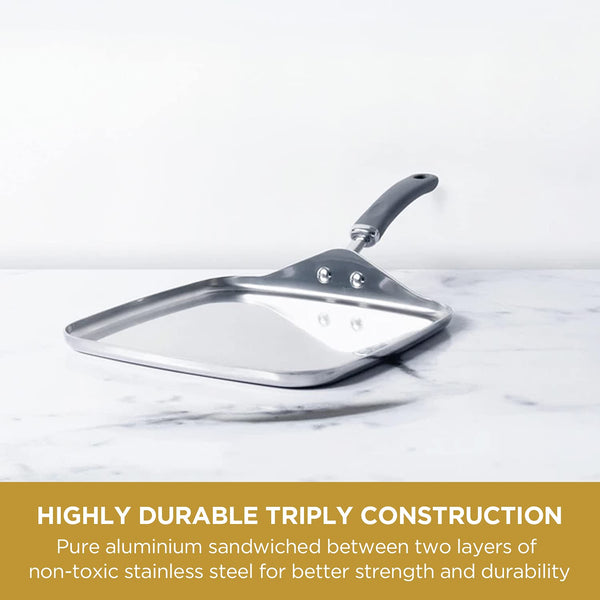 Details: Meyer Non-Stick Cookware Set: Elevate Your Culinary Journey Discover the art of effortless cooking with the Meyer Non-Stick Cookware Set. This versatile collection includes a non-stick pan, kadai, grill pan, tawa, and a nonstick tava - all designed to redefine your cooking experience.Experience cooking mastery with Meyer's advanced non-stick coating. Say goodbye to sticking and scraping; your creations will slide effortlessly onto the plate.Designed with user comfort in mind, each piece features ergonomically designed handles for a secure grip, allowing you to cook with confidence. Cleaning up is a breeze. The non-stick surface requires minimal effort to wipe clean, ensuring your cookware looks as good as new after every use.Variety of Cookware Included Non-Stick Pan, Kadai,Grill Pan,Tawa,Nonstick Tava.Revolutionize Your Cooking Today with Meyer's Finest Cookware.