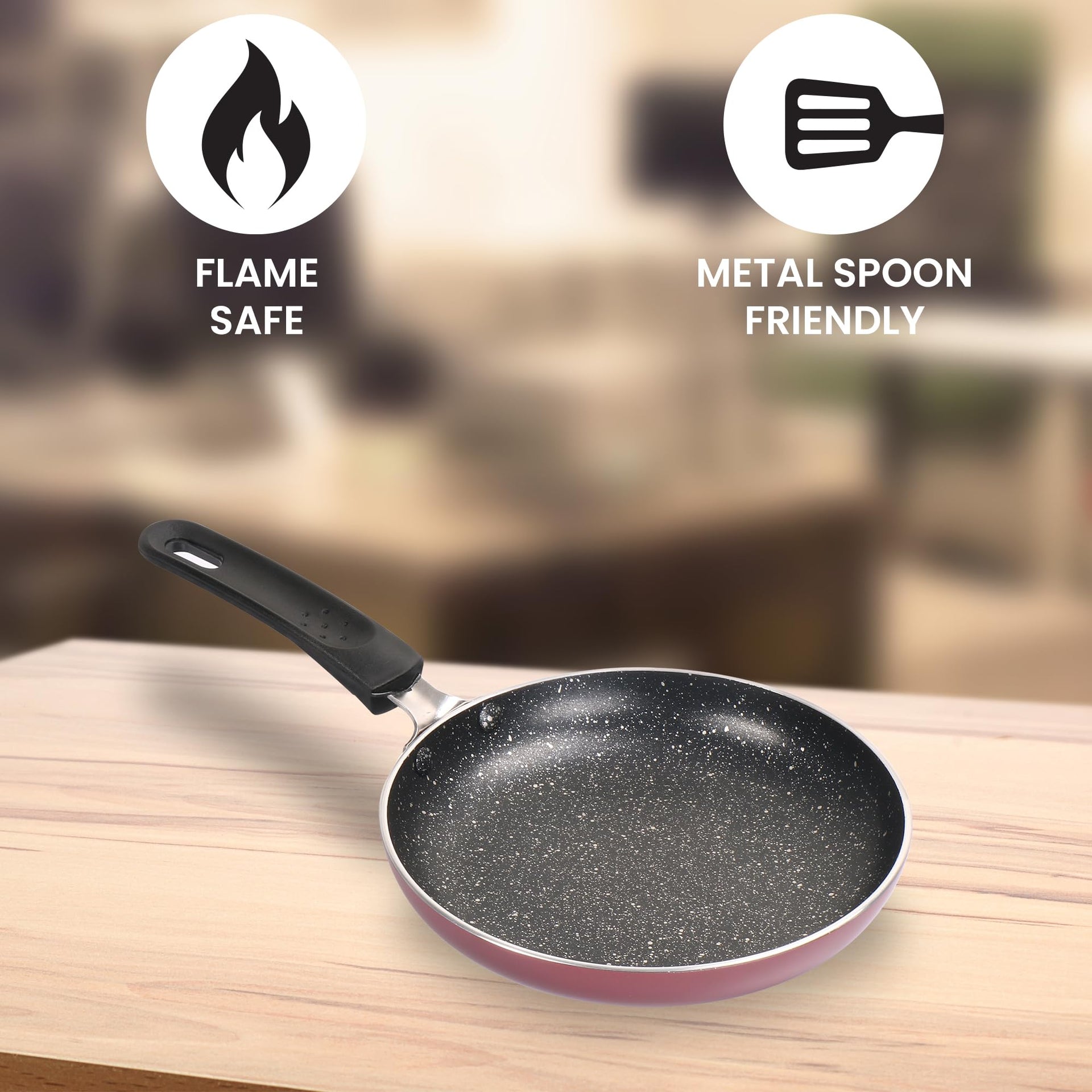 MILTON Pro cook Granito Non Induction Fry Pan, 14 cm, Burgundy, Flame Safe, Dishwasher Safe, Food Grade, Metal Spoon Friendly, Non - Stick, Bakelite Handle, 2 Years Warranty