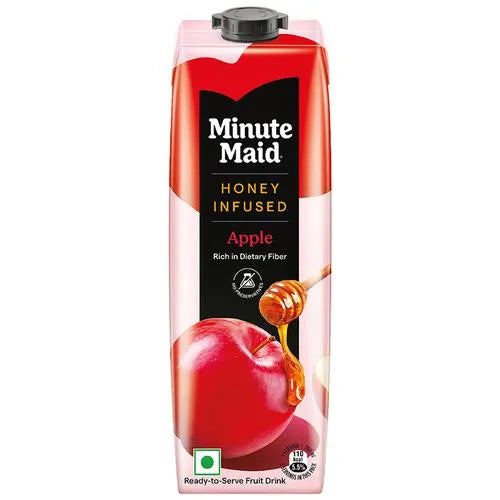 Indulge in the delicious and guilt-free Minute Maid Honey Infused Apple Juice. Made with premium quality apples and infused with honey, this drink is cholesterol-free and has zero added preservatives. Enjoy the flavorful taste while retaining more vitamins, minerals, and antioxidants from the fruit. Perfect after work!