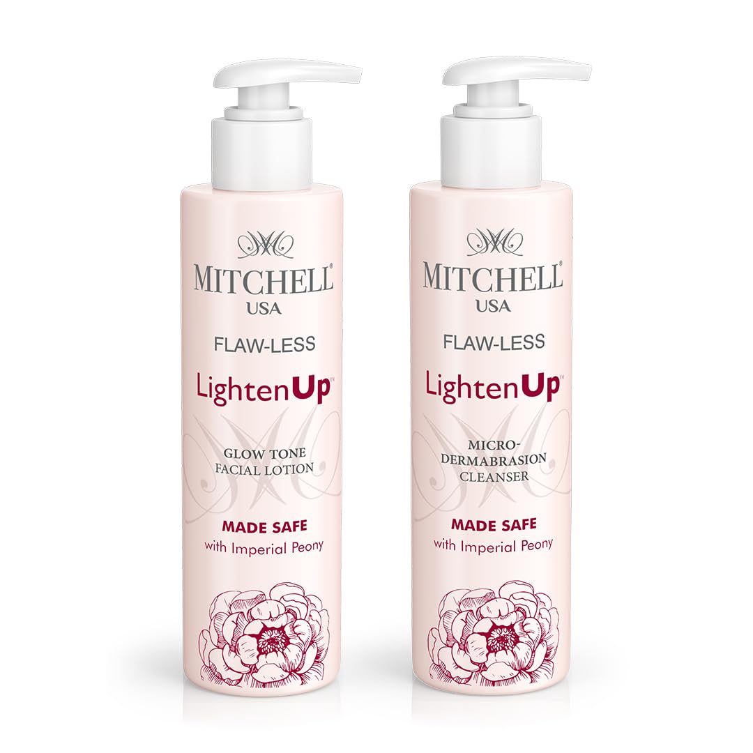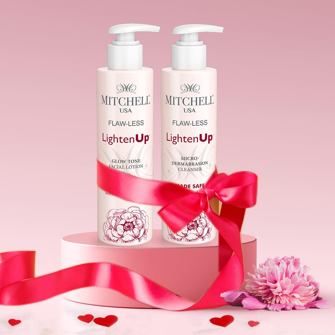 Mitchell USA LightenUp Micro Dermabrasion Cleanser + Glow Tone Facial Lotion Radiant Duo Gift Combo Set (Pack of 2 100ml + 100ml)