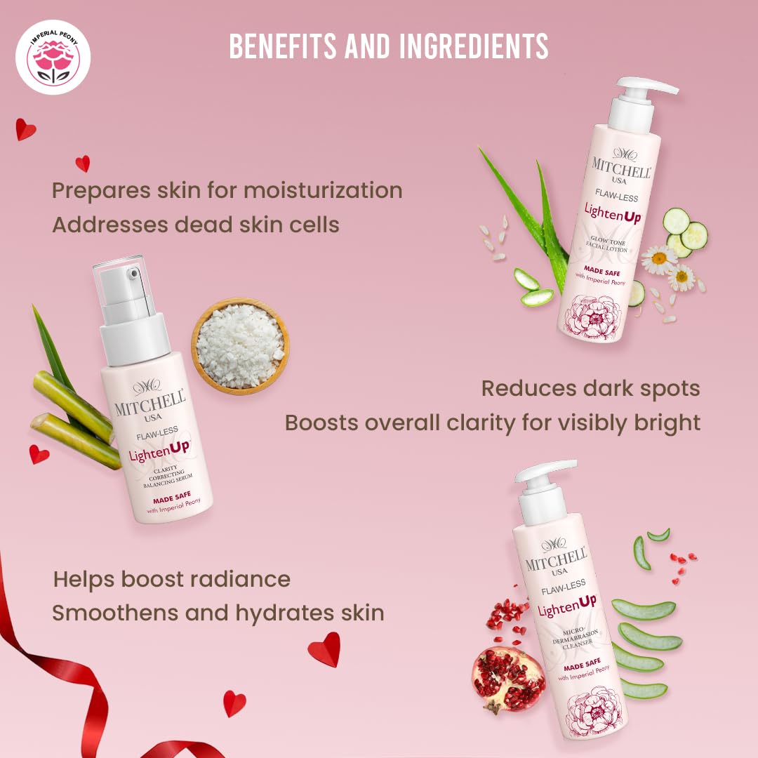 Mitchell USA LightenUp Radiant Essentials Skincare Trio Micro Dermabrasion Cleanser, Glow Tone Facial Lotion and Clarity Correcting Balancing Serum (Pack fo 3, 100ml + 100ml + 50ml)