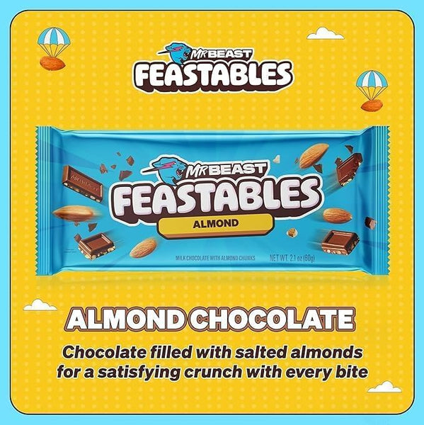 Details: Mr. Beast Almond brings together the best of both worlds – creamy milk chocolate and crunchy, roasted almonds. Each bite is packed with flavor and texture, offering the perfect balance of smooth sweetness and nutty crunch. This bar is for those who love a little extra crunch in their chocolate!