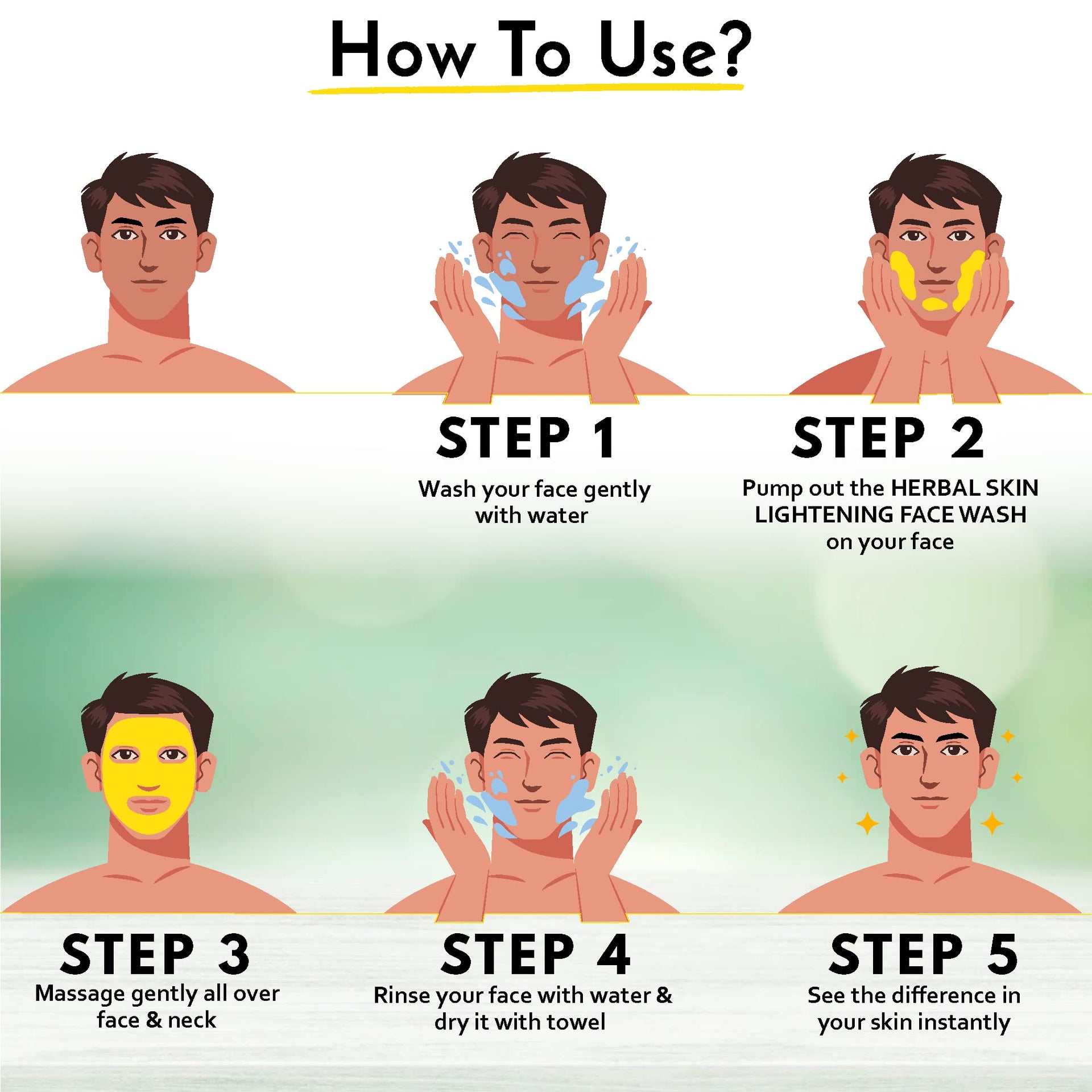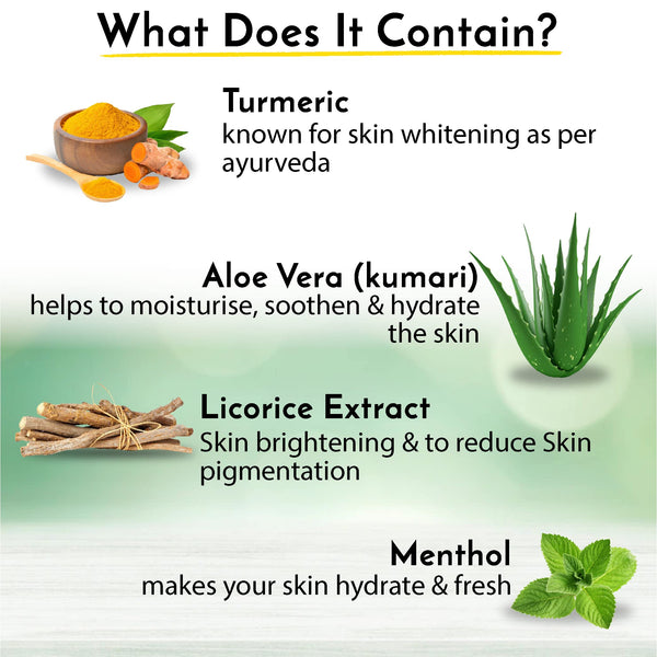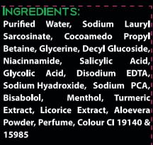 Details: Introducing our specially formulated face wash for men: the ultimate solution for brighter skin. Enriched with turmeric, it not only brighten skin but also fights acne & pimple, offering clear skin and oil control. Experience a brighten skin with each use, tailored specifically for men's skincare needs. Say hello to brighter, clearer skin with our specially developed formula. Ingredient List - Purified Water, Sodium Lauryl Sarcosinate, Cocoamedo Propyl Betaine, Glycerine, Decyl Glucoside, Niacinnamide, Glycolic Acid, Salicylic Acid, Disodium EDTA, Sodium Hyadroxide, Sodium PCA, Bisabolol, Menthol, Turmeric Extract, Licorice Extract, Aloevera Powder, Perfume, Colour CI 19140 & 15985