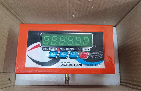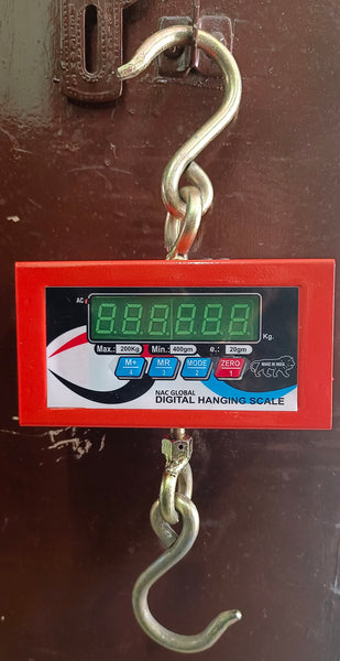 Details: Nac Global Hanging Weighing Scale 200kg Mini Crane scale Electronic Portable Weight Machine for Luggage Agriculture Fishing Scrap Digital Multipurpose Weighing Scale crane scale 200kg weight machine for cyliners farm hook weight machine Portable and Safe: Directly Plug-in 220V Power adapter or use battery to operate the machine which provides power backup of upto 8 hours. The scale will also automatically switch off when it is in non-use condition, to save power for General Grocery stores, Kitchens, Parcel weighing, Warehouses, Retail weighing and all kinds of Industries. Can be used anywhere for high accuracy weighing of 2gr Package:Weighing Scale ,Power Adapter