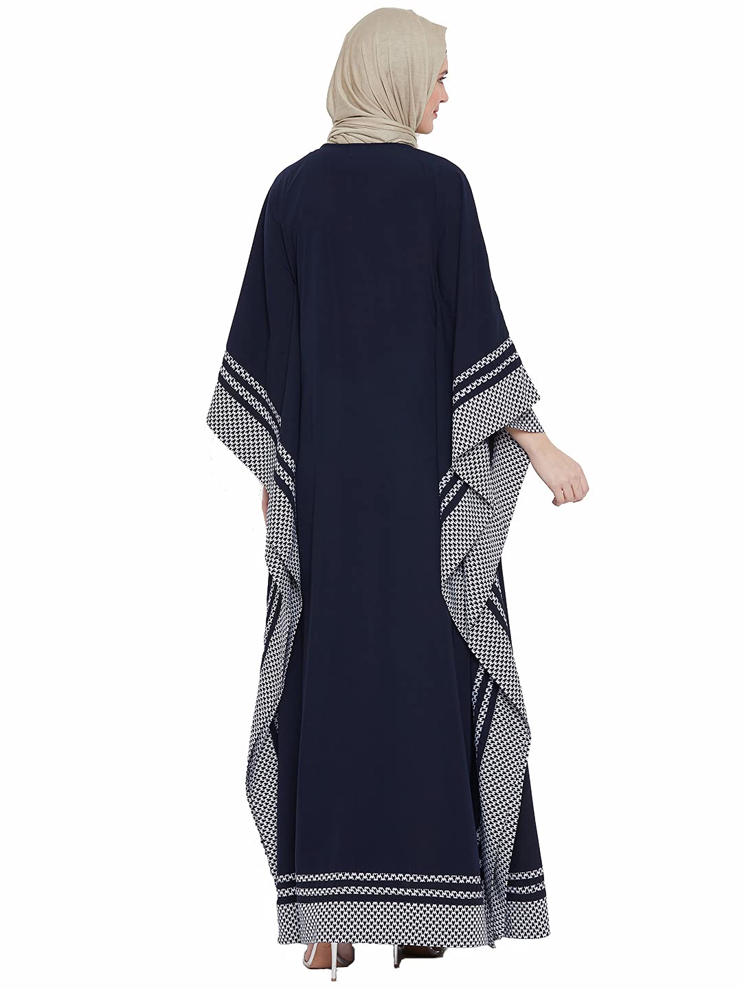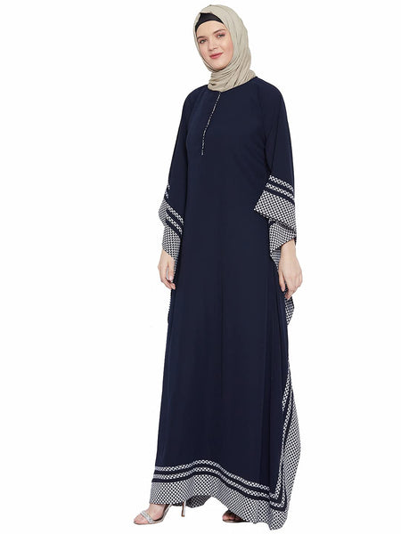 Women's full Kimono Sleeve Navy Blue Abaya . Soft polyester fabric. No colour Bleeding. No shrinkage after wash. Normal hand/ machine wash.