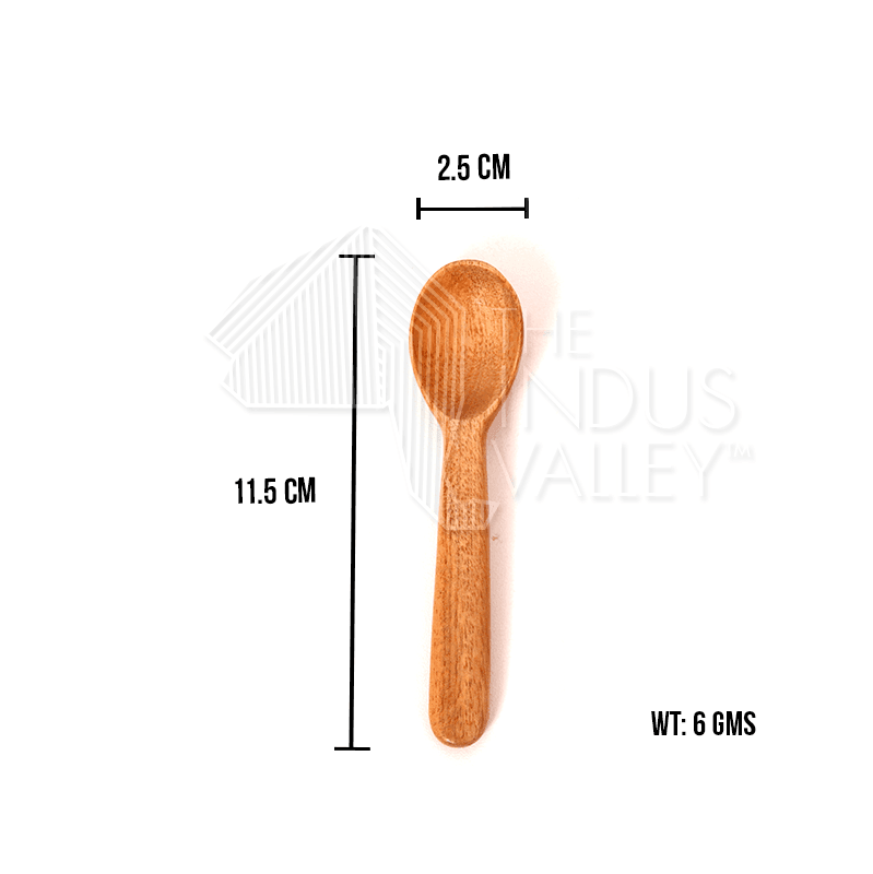 - Wood Masala spoon Dimensions: Length: 11.5 CM Breadth: 2.5 CM. 100% Natural, Premium quality Neem wood. Food Safe