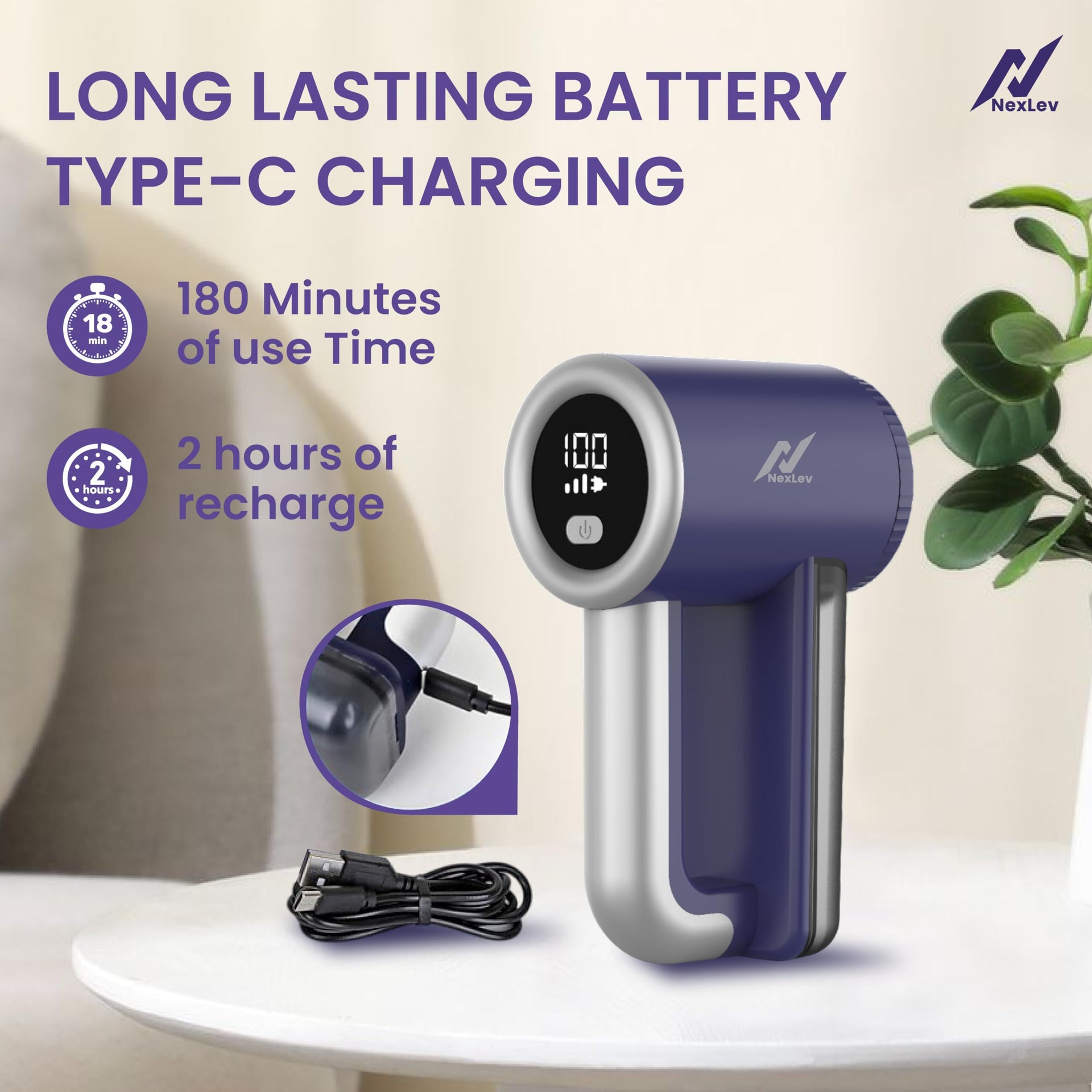 Details: Nexlev Lint Remover & Fabric Shaver | Sofa, Blanket & Clothes |Digital Display| 6 Stainless Steel Blades| 3 Speed Modes| Heavy Duty| 120Mins Usage| Large Tank | Type C| 2000 mAh Battery | LR-02 (Blue)