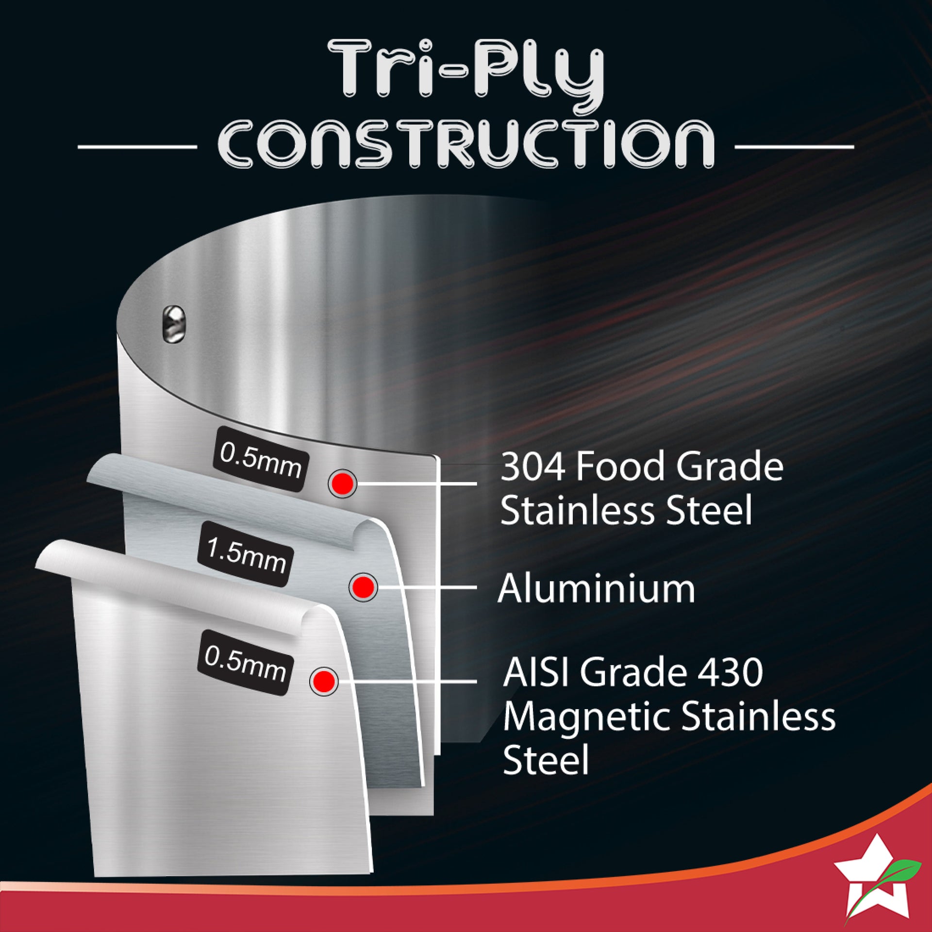 Nigella Tri-ply Stainless Steel 24 cm Casserole | 4.8 Litres | 2.6mm Thickness | Induction base | Compatible with all cooktops | Riveted Cool-Touch Handle | 10 Year Warranty