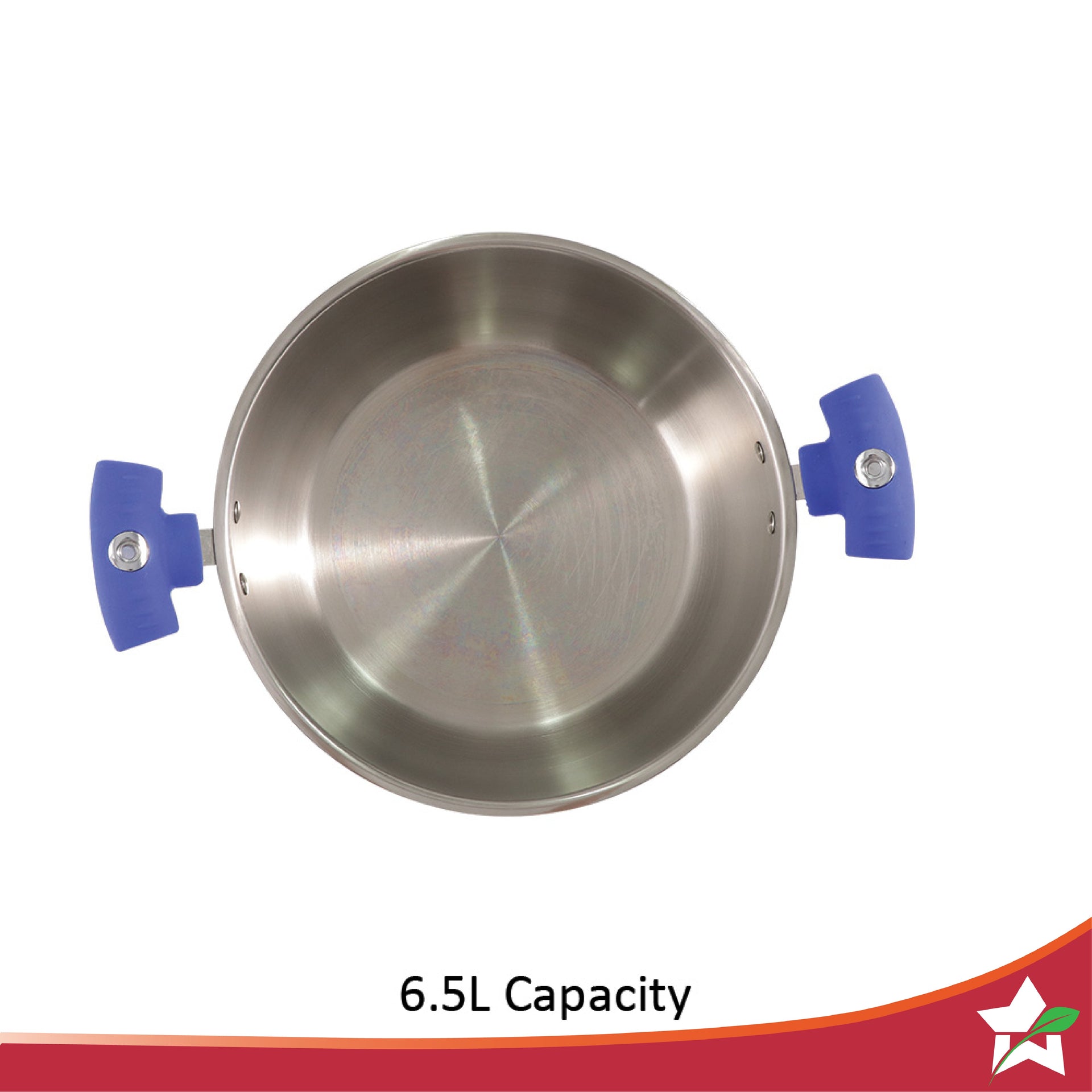 Made with high-quality food-grade stainless steel with a thick 3ply (steel –aluminium – steel) bottom for efficient heat retention and even cooking of the food. The mirror finish of the body adds a special charm.