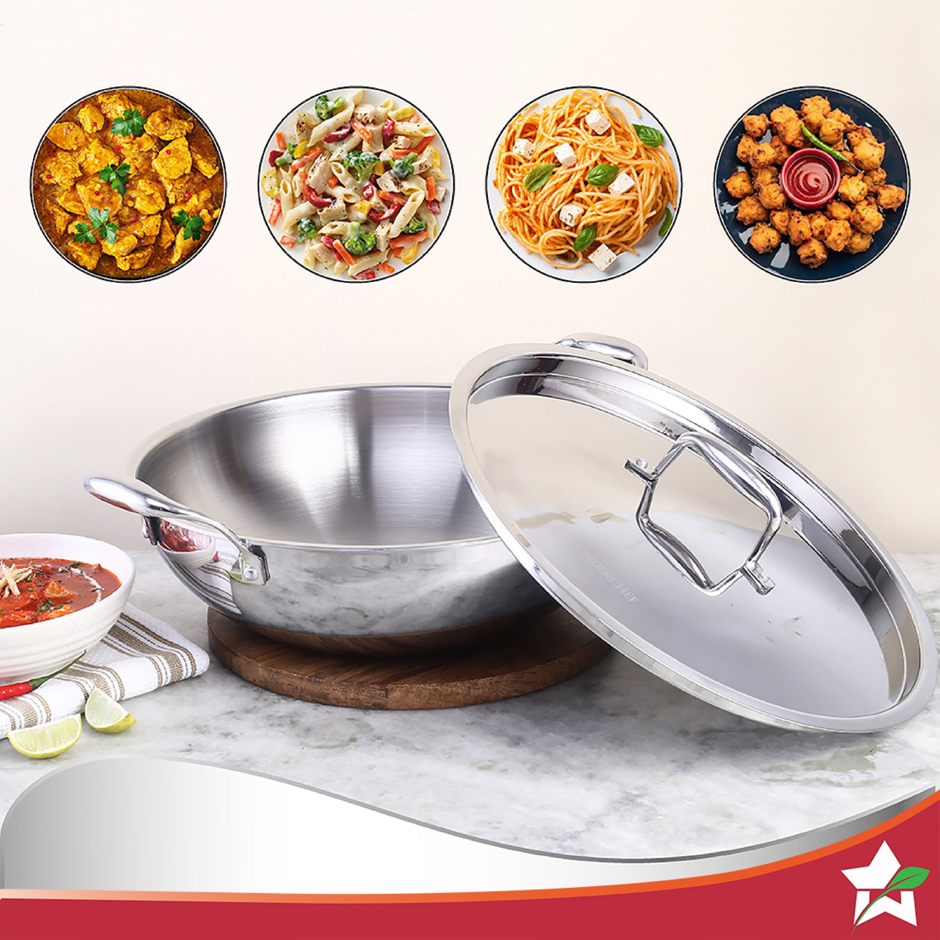 - Perfect Cooking Every Time: With its 2.6mm thickness and tri-ply walls, this kadhai ensures your food is cooked to perfection without burning, while the even heat distribution guarantees consistent results every time.
