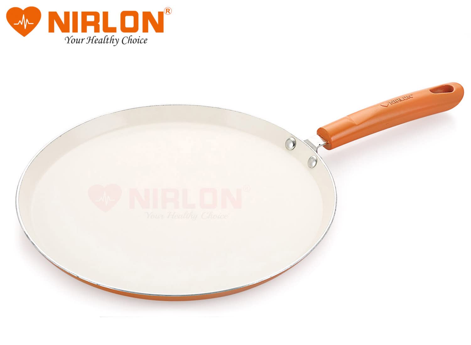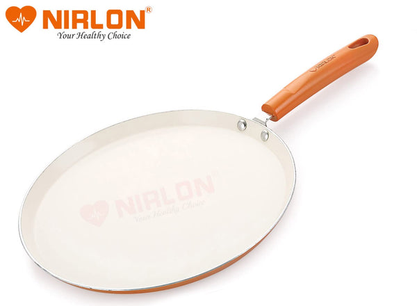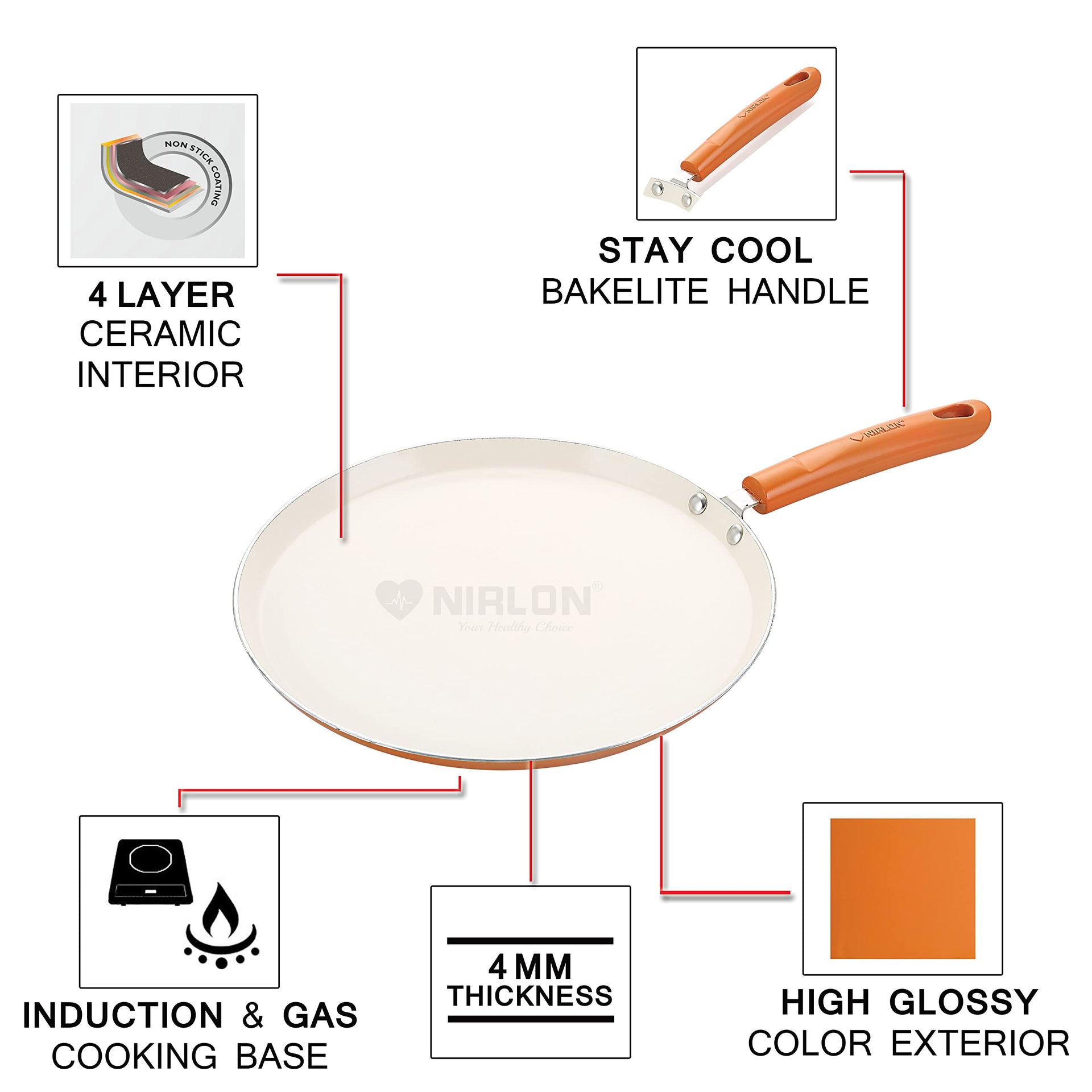Nirlon Ceramic Flat Dosa Tawa 28cm,Heat-Resistant Handle, Heavy Guage 4mm Thick Aluminum Cookware for Induction/Gas Stove Tops, 4-Layer Nonstick Coatings, Orange(Ceramic_Flat_Tawa 28cm)