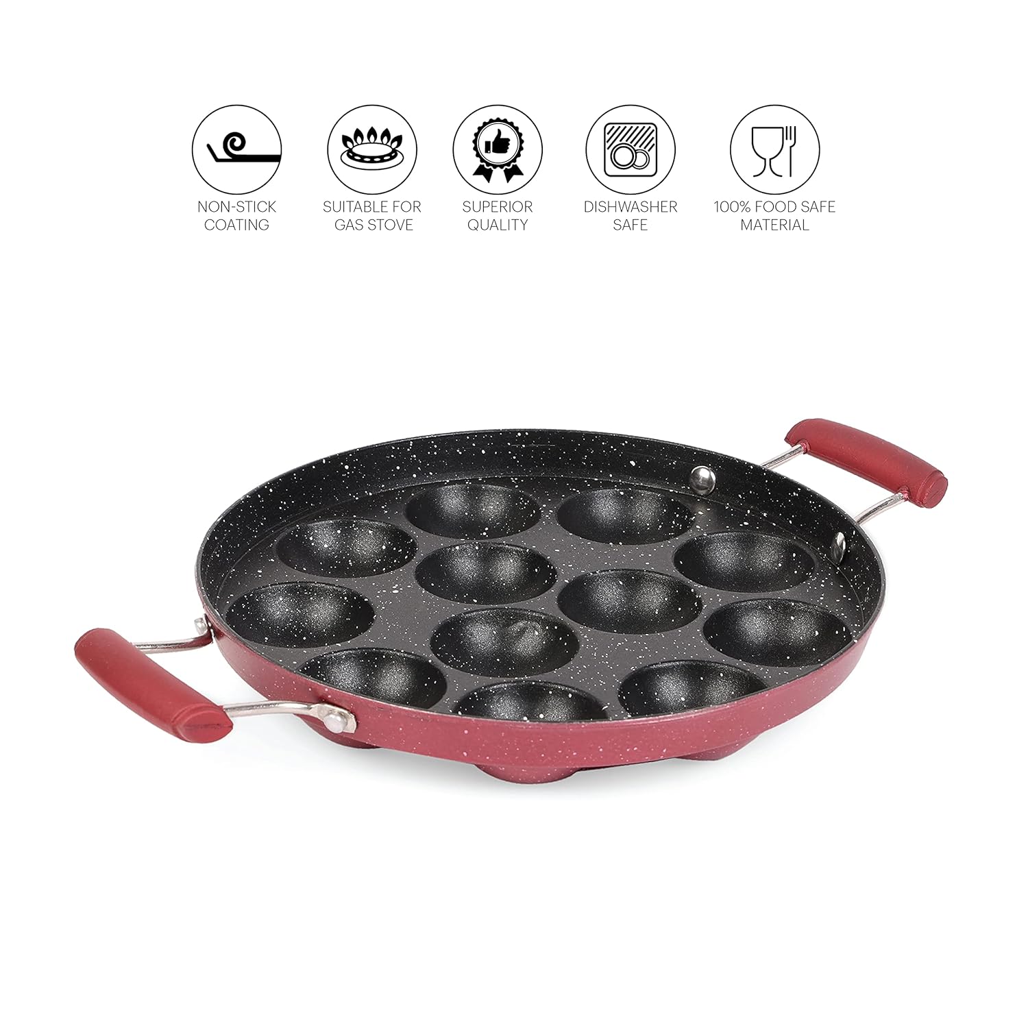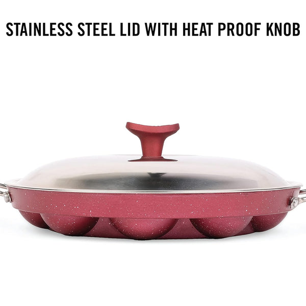 Non-Stick Crown 12 Cavity Appam Patra, Maroon