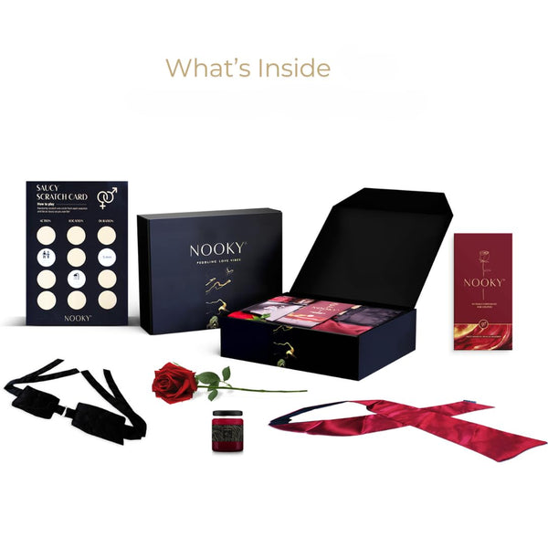 Details: This thoughtfully crafted kit is perfect for couples who want to enhance their bond, whether you're celebrating a first date or looking to add some excitement to a long-term relationship. The Kit includes a selection of romantic and fun items designed to create unforgettable moments together. Inside, you'll find Nooky Dark Chocolate, a fun scratch card for an added thrill, a satin blindfold to introduce an element of mystery, a scented candle to set the mood, a handcuff for a playful touch, and an artificial rose to symbolize affection. Each piece of Nooky Chocolate is made for sharing—simply break it in half and enjoy it with your partner. For the best experience, wait 30 minutes before engaging in your personal moments to fully feel the effects. The chocolate is crafted from natural, vegetarian ingredients and works as a mood booster for both men and women. It’s important to note that it’s not suitable for pregnant or lactating women, nor for children under 18. This kit is perfect for creating memorable date nights, anniversaries, or just as a thoughtful surprise for your partner. It encourages meaningful connection and joy between you and your loved one. Nooky Chocolate is FSSAI-approved and undergoes stringent quality control, with all ingredients sourced from trusted Indian suppliers. For optimal freshness, store it in a cool, dry place away from direct sunlight.