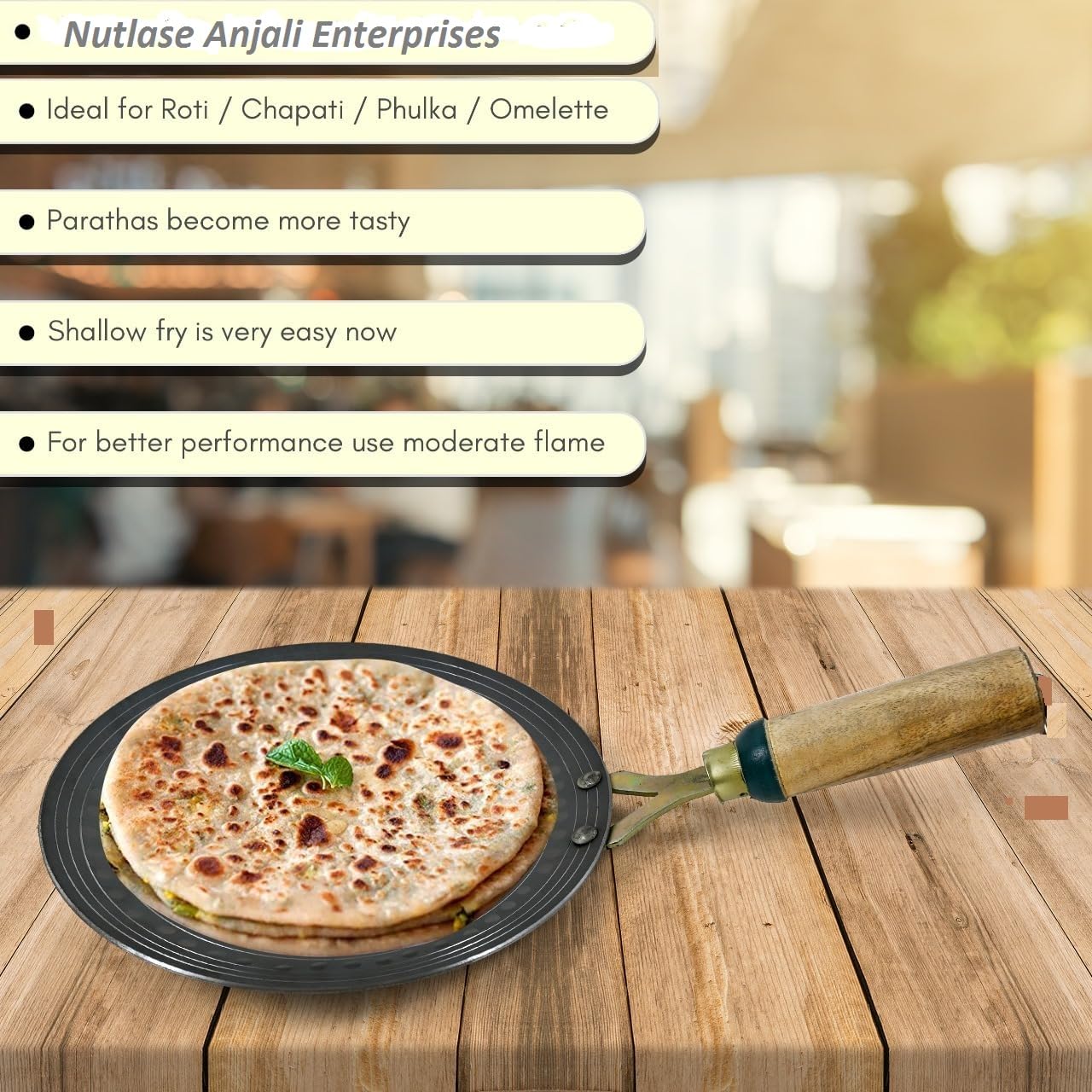 Nutlase Iron Tawa for Roti, Chapati, and Dosa - Manually Hammered Cast Iron Tawa with Smooth Handle, Durable and Versatile Iron Roti Tawa, Ideal Tava for Cooking Roti, Chapati, Tava (9.1 inch)