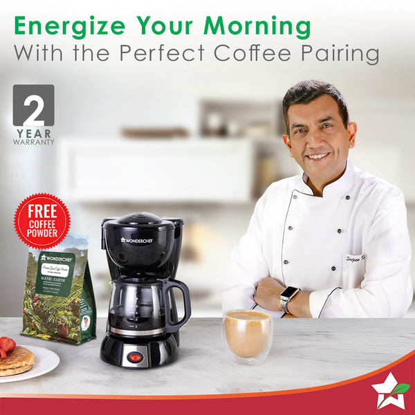 Indulge in the delightful taste and enticing aroma of freshly brewed coffee with the Wonderchef Onyx Brew Coffee Maker. Start your day on a perfect note with a cup of rich and flavourful coffee.