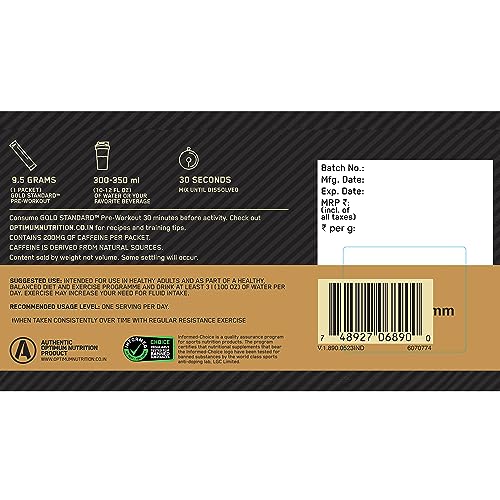 Details: NO NOISE. JUST PROVEN INGREDIENTS. Gold Standard Pre-Workout was created to provide a pre-workout supplement built around sought-after, premium ingredients that are evidence-based, banned substances tested per the Informed Choice certification, and have a history of use and understanding. GOLD STANDARD PRE-WORKOUT combines caffeine from natural sources with creatine monohydrate and L-citrulline to help you unleash energy, focus, performance, power, and endurance. Whether your goal is to reach the pinnacle of your game, crush your next set, or get that last rep, get your energy with the pre-workout from the brand with the reputation of PROVEN Performance Nutrition for +35 years.