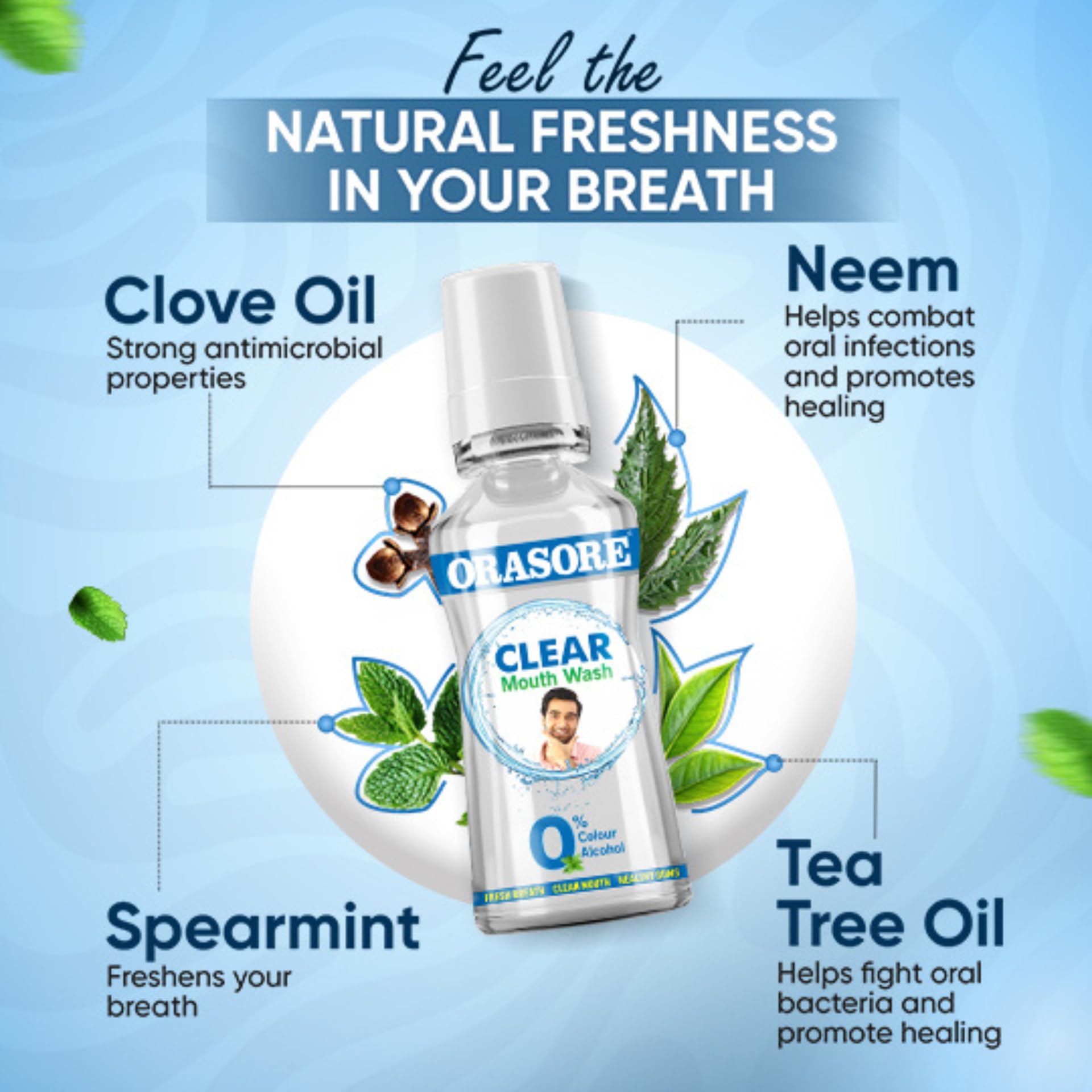 Details: Orasore Ultimate Oral Care Combo Pack with: ✅ Orasore Mouth Ulcer Gel 12gm ✅ Orasore Mouth Ulcer Tablets (1x10) with Free Pen ✅ Orasore Clear Mouth Wash (100ml) Small things in life can bring joy, they can also spoil the fun. Like mouth-ulcers. Imagine a table with freshly-fried samosas, Inviting you to dig your teeth into it.. But you can't because you have a mouth-ulcer. Don't worry, help is at hand - Just a dab of Orasore Gel would do! :) How Orasore Mouth Ulcer Relief Gel helps you? Its triple action formula diminishes the pain, prevents inflammation in the mouth and kills the bacteria and fungi that infect the mouth. How Orasore Mouth ulcer tablet gives complete treatment from mouth ulcers? Orasore mouth ulcer tablet have a unique composition of B-Complex Vitamins such as B2, B3, B9 & Probiotics (Lactic Acid Baccilus) that improve the digestion system of body and give complete treatment from mouth ulcers. Directions For Use Orasore Mouth Ulcer Gel: 1. Wash your hands properly. 2. Apply sufficient quantity of Orasore Gel to cover the affected area. 3. Rub Orasore Gel gently on the affected area. 4. Procedure may be repeated after every 3 to 4 hours or as directed. Dosage & Administration for Orasore Tablet: Adult – 1 tablet in Morning and Evening for 3 to 5 days. Children ( 6–12 Yrs ) – 1 tablet in a day for 3 to 5 days. ✅Orasore Clear Mouthwash 💯No Colour & No Alcohol - Alcohol-free formula hydrates, soothes, and relieves mouth without burning or irritating. Gentle enough for the most sensitive mouths. 💯100% Ayurvedic that Cleans & Soothes - Orasore Clear Mouthwash improves Oral Health without irritation or burning. 💯Antibacterial & Antiseptic - 12 Powerful Natural Ingredients that Makes Teeth Strong, Prevents Gum Infection, and Stops Tooth Decay & Cavities 💯Kills Bad Breath - Orasore Clear Mouthwash is indicated for dental freshening, pyorrhea, dental carries and dantshool.