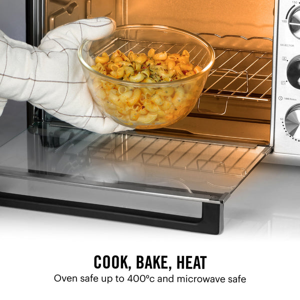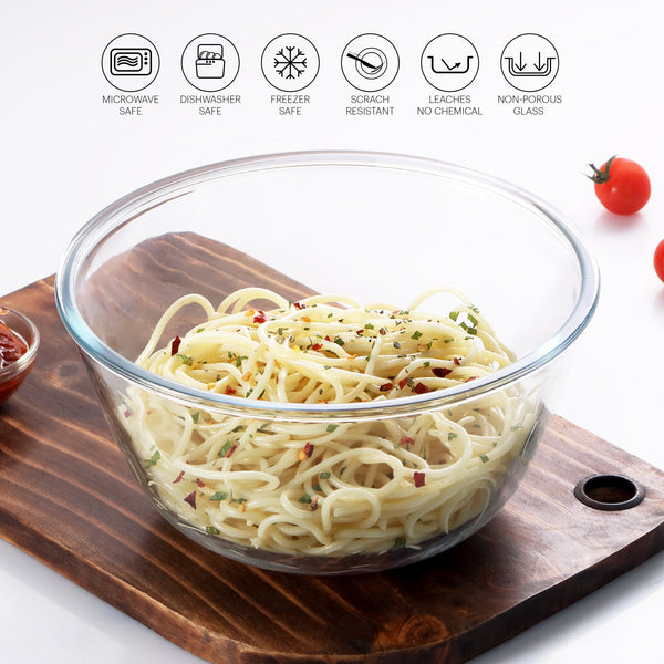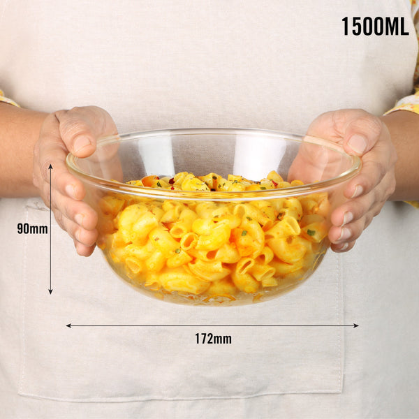 The Ovenware Borosilicate Glass Mixing Bowl, with a generous 1500ml capacity, is the epitome of durability and versatility. Crafted from high-quality borosilicate glass, this mixing bowl is built to withstand extreme temperature changes, making it ideal for a wide range of kitchen tasks. Whether you're mixing ingredients for a batch of cookies, preparing a salad, or marinating meats, this bowl can handle it all. Its transparent design allows you to monitor your mixing progress easily. With one mixing bowl included in the set, it's a practical and space-saving addition to any kitchen.