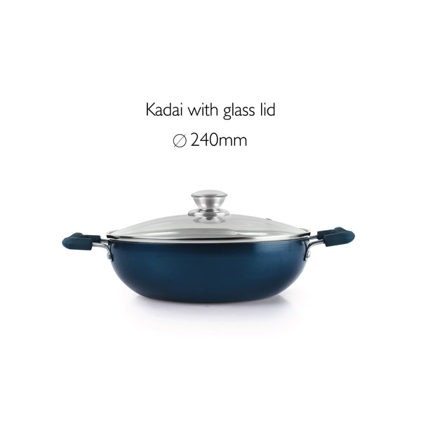 The Oxford Non-Stick Induction Base Kadhai with Glass Lid is crafted with a superior American heritage Dupont non-stick coating, this versatile cookware ensures healthy cooking by minimizing the need for excess fats and oils. Its compatibility with both gas stoves and induction cooktops offers convenience, while the quick and even heat distribution guarantees efficient cooking.