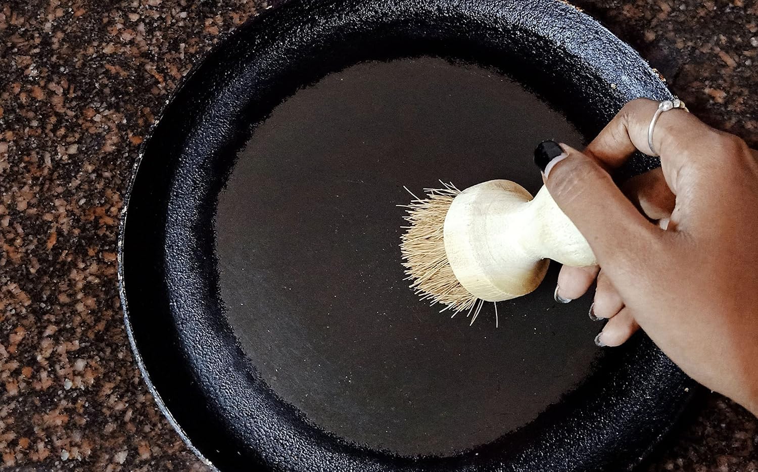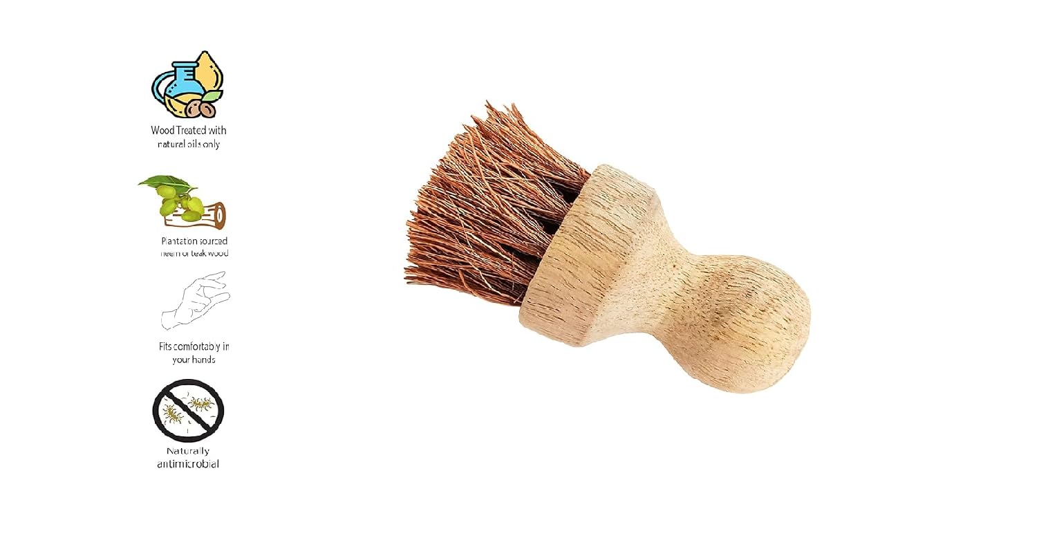 Palmera Natural Coir Tawa Brush for Spreading Oil on Dosa Tawa, Iron Tawa, Roti Tawa & Low Oil Frying on Pans (Fully Natural Food Grade Vaarnished Wood, 9X6X6 cm) (Pack of 1)