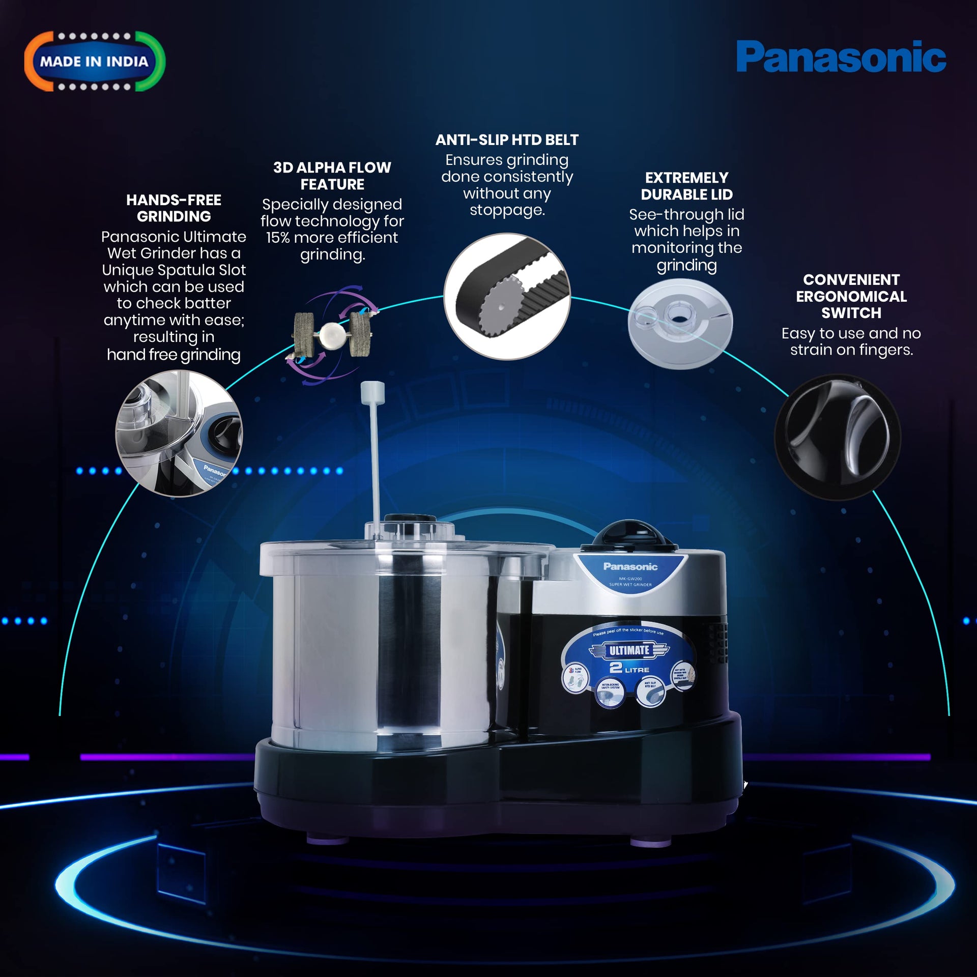 Panasonic Plastic Mk-Gw200 Super Wet Grinder (Black)