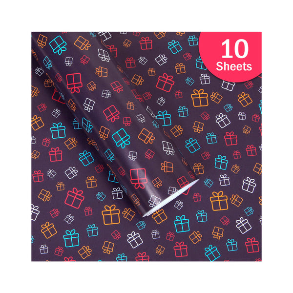 Paper Pep Blue Gift Boxes Print Gift Wrapping Paper 19"X29" Pack Of 10 Sheets