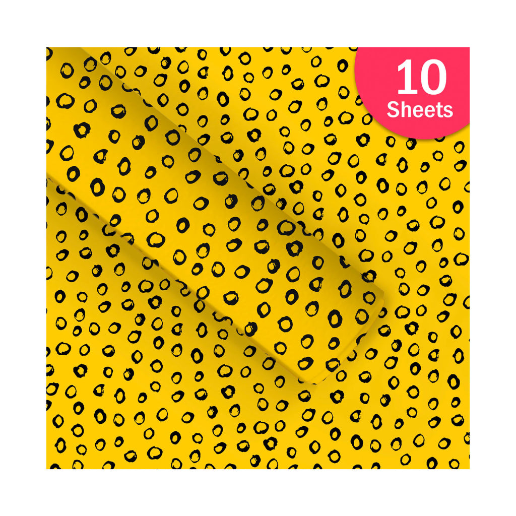 Paperpep Yellow Black Round Spots Print Gift Wrapping Paper 19"X29" Pack Of 10 Sheets For Gift Packing Birthday, Anniversary, Diwali, Christmas, All Occasions And Events, Crafts, Return Gifts