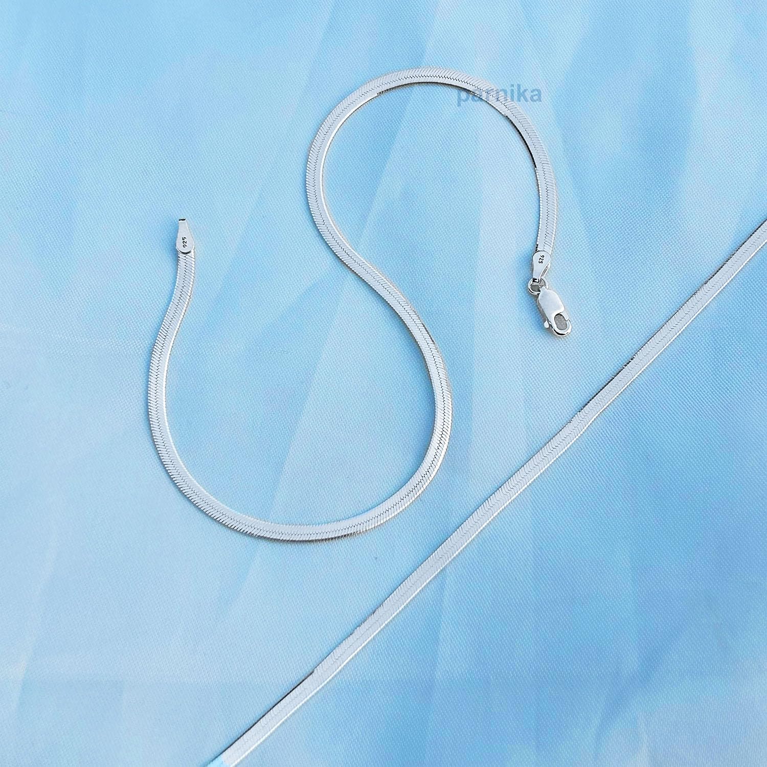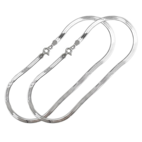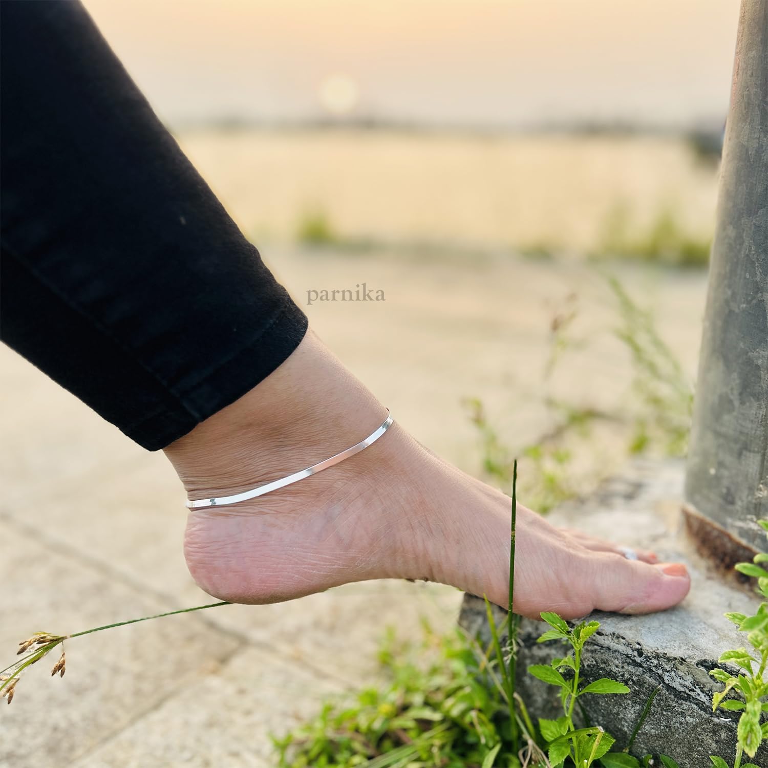 Parnika MJ 925 Beautiful Silver Payal Anklets In Pure 92.5 Sterling Silver For Women & Girls | With Certificate Of Authenticity | Pure Chandi Payal | Gift For Her |(Flat Snake - Pair)