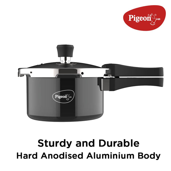 Details: Pigeon Induction Base Hard Anodised Aluminium Outer Lid Pressure Cooker 2 Litre is multi-top compatible. Therefore, it can be used on standard gas, induction, halogen, electric, and ceramic cooktops. The base of the cooker remains flat without bulging or becoming concave. This ergonomic pressure cooker maintains its gleam without corroding, which is an indication of its durability. The cooker is easy to clean and simple to maintain. Prepare wholesome and nutritious meals for your loving family and friends