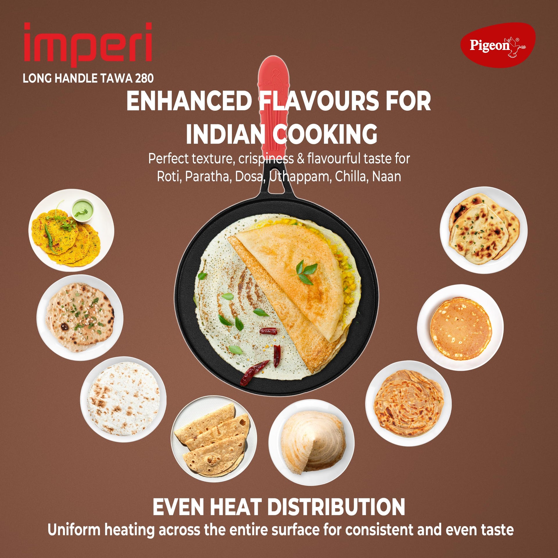 Experience the unparalleled joy of cooking with cast iron, a material renowned for its durability and heat retention capabilities. This Tawa ensures even heat distribution, allowing you to achieve flawless cooking results every time. From perfectly crispy dosas to fluffy pancakes, you can now create culinary masterpieces with ease.