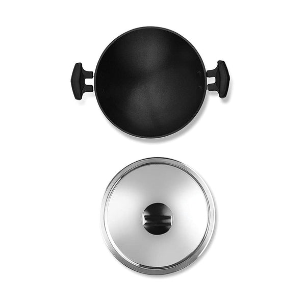 The hollowness of the cauldron of this non stick appachetty with lid is apt for preparing eponymous foods. Its spiral base accelerates quick heat transmission and provides even heat distribution resulting in uniform cooking. Furthermore, since the rounded pan heats up evenly and quickly, the entire cooking process is completed speedily. The triple-layered non-stick coating of this Pigeon appachetty with lid, which is imported from Germany, is food grade and non-toxic. Additionally, the non-stick coating is also scrape-resistant and hence you can use metal spoons and ladles while tossing and turning contents.