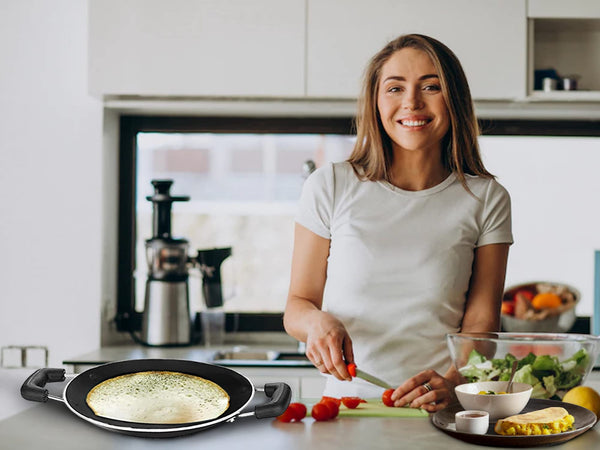 Your family members and guests would simply lap up the appams when you prepare them in the Pigeon Special non stick appachetty with lid. This appachetty along with the lid is made of treated aluminium that makes it stupendously robust, letting you use it for cooking on a day-to-day basis and for years on end. You can also easily pick up and carry the Pigeon non stick appachetty with lid as its strong Bakelite handles are cool to touch and the metallic material from which the cauldron has been produced is very lightweight.