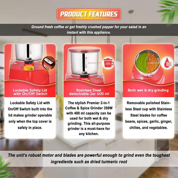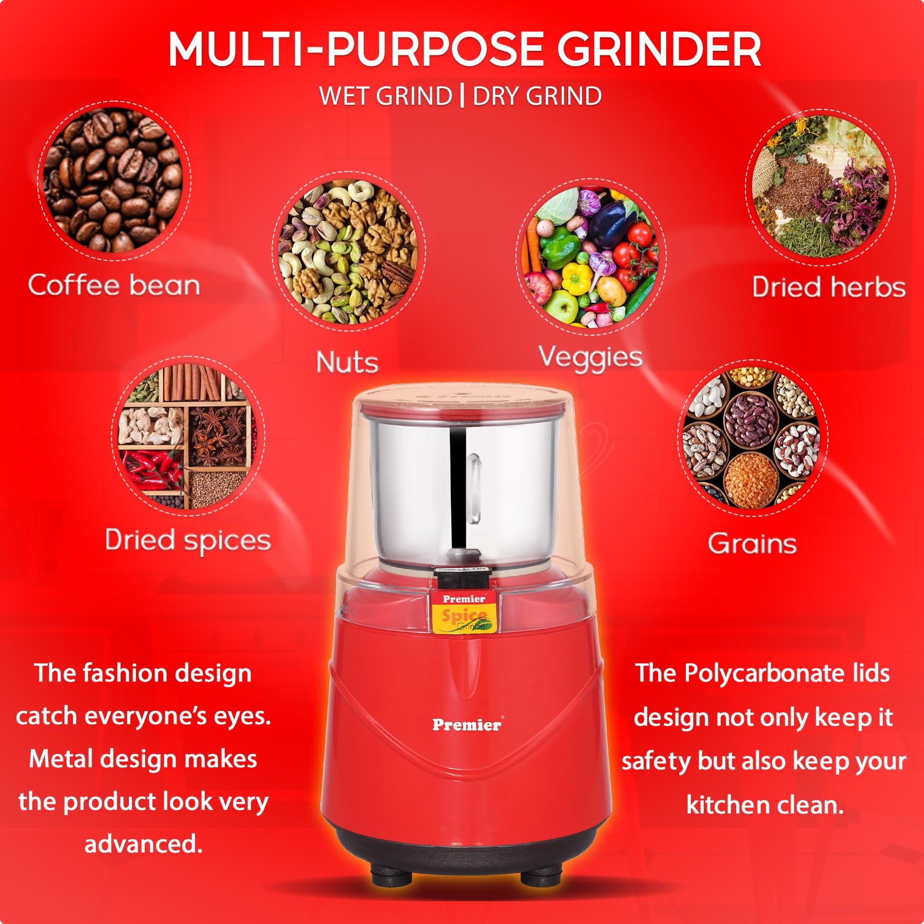 - User-Friendly: Easy to operate with a simple On/Off switch and a clear polycarbonate lid to monitor the grinding process