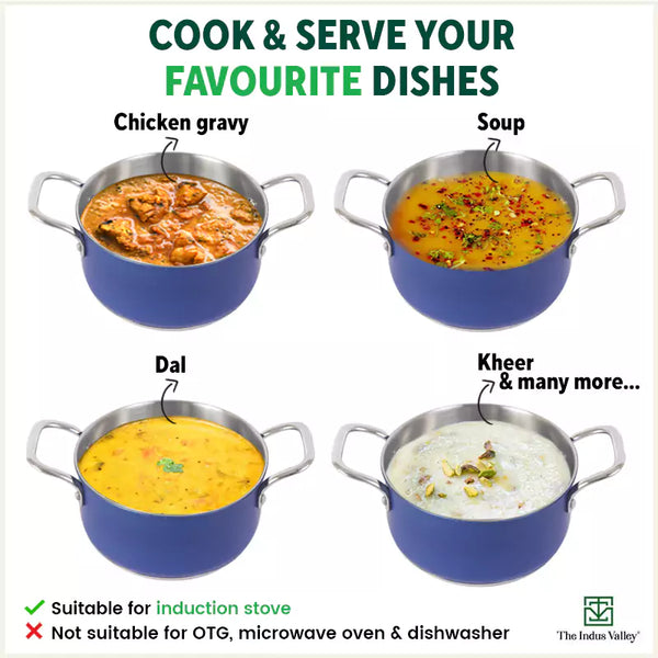 🙅🏼NON-REACTIVE NATURE: It has zero chemical coating. Unlike non-stick casserole or aluminium utensils, this food-grade saucepot does not react with food.