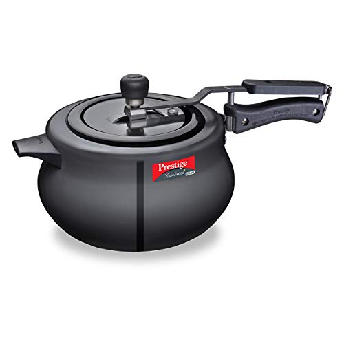 Details: India's First No-Mess Pressure Cooker! Bring home a Handi that helps you keep the kitchen clean and safe. The Nakshatra Plus Hard Anodised Svachh Pressure Handi is designed to last longer and comes with a unique lid that contains any spillage that might occur during the course of cooking and prevents the messy liquid from dripping down. Not only is it a gas and induction compatiblebut comes with added safety features that makes it one of the most reliable Handi for your kitchen. Metallic Safety Plug
