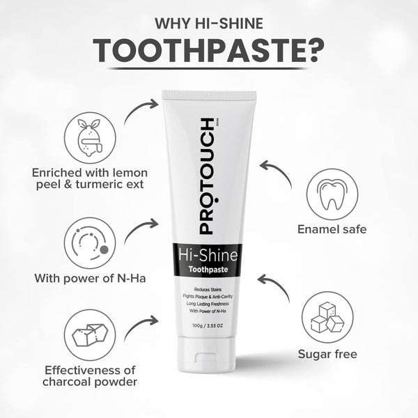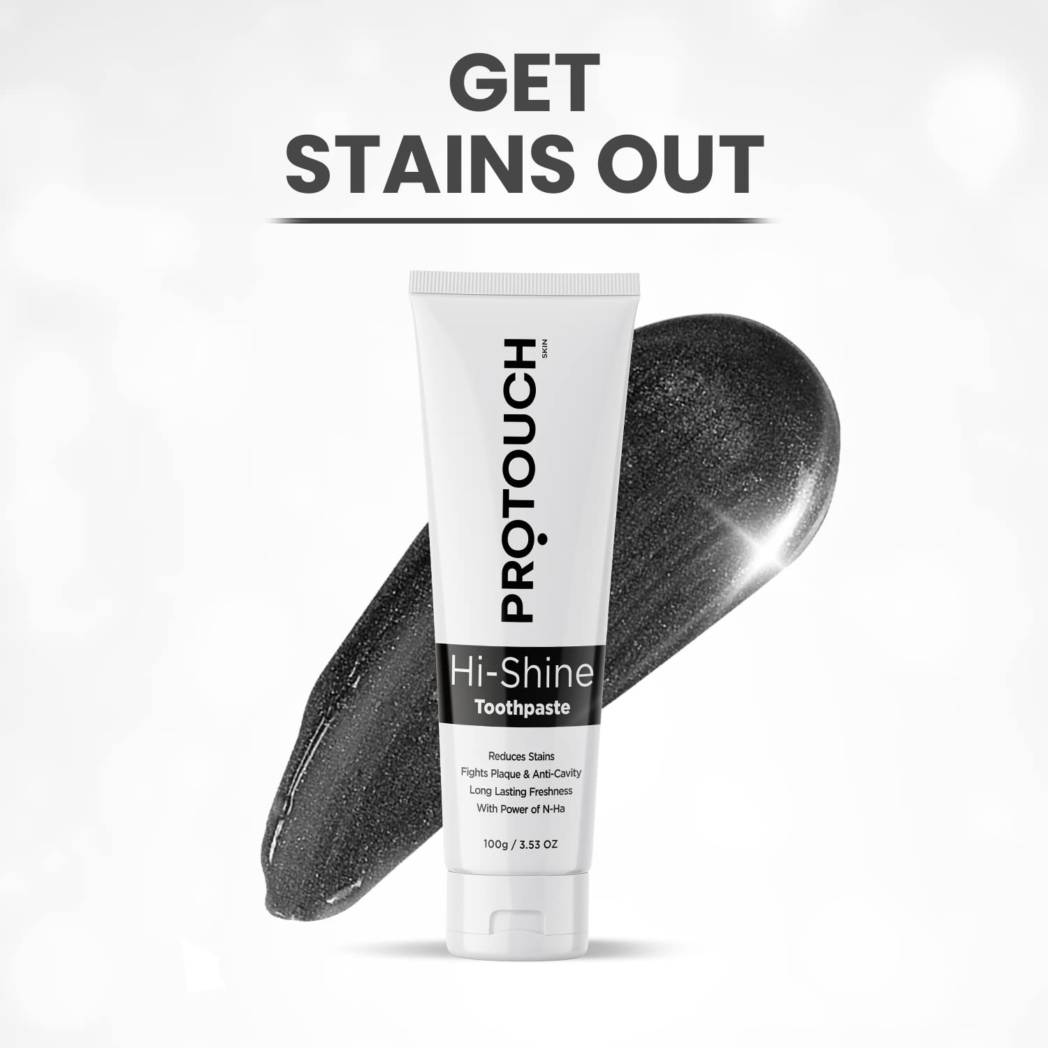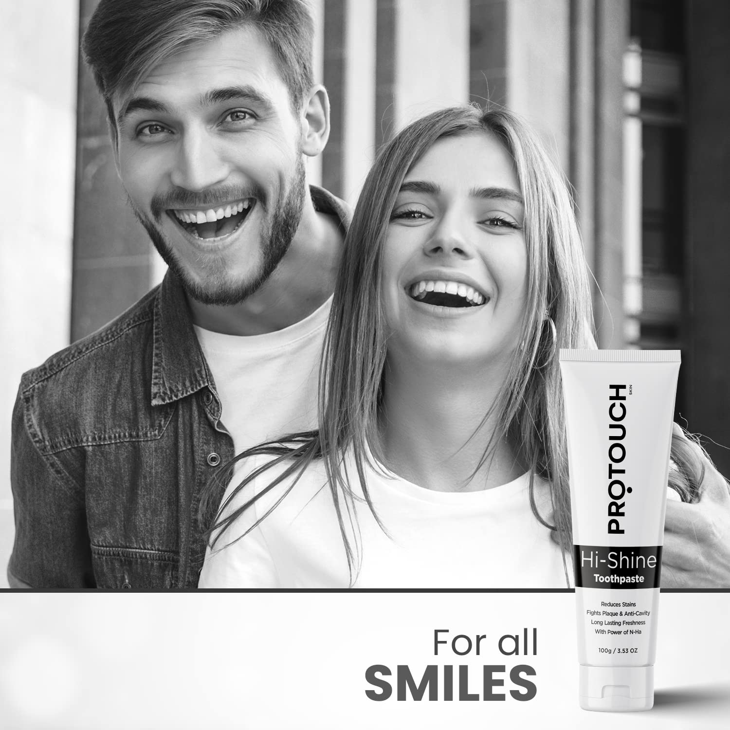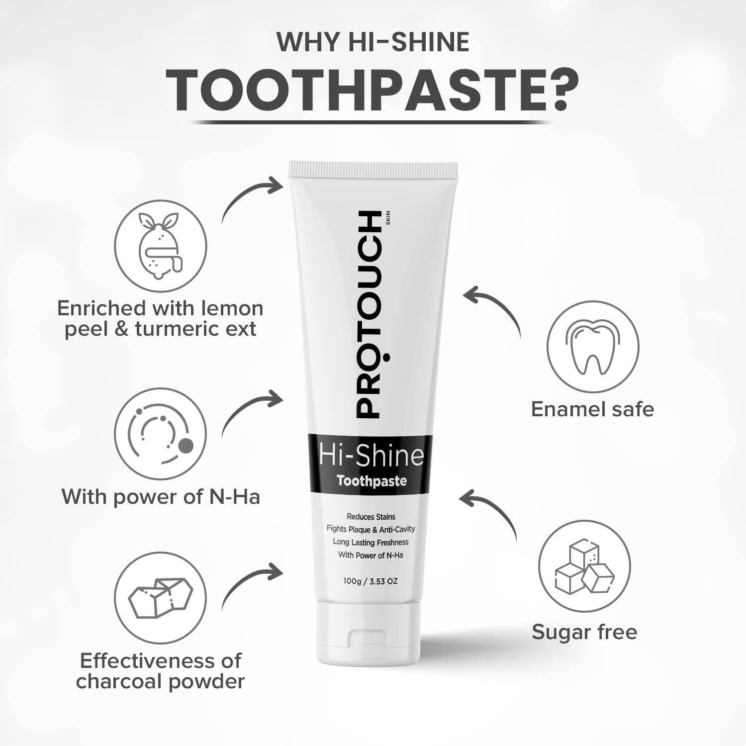 PROTOUCH Hi Shine Toothpaste | Teeth Whitening, Cavity Prevention and Superior Cleaning | With Charcoal | SLS & Fluoride Free Toothpaste with N-HA for teeth remineralization & Active Cleaning