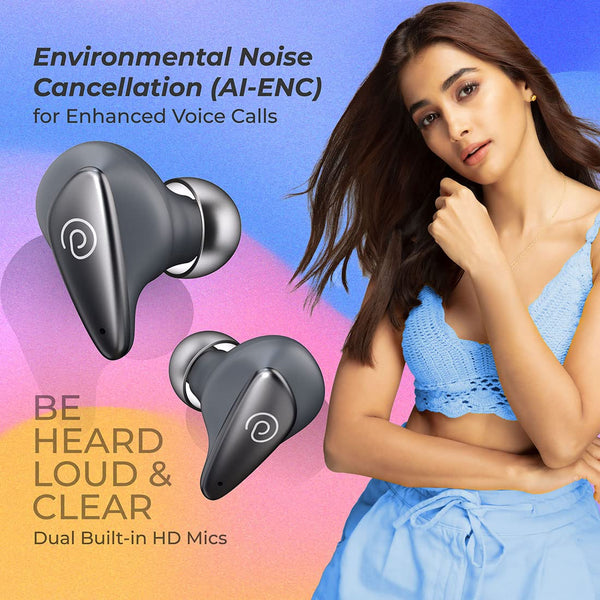 pTron Bassbuds Wave with TruTalk AI-ENC Calls, Movie/Music Modes, Deep Bass, BT5.3 Wireless Headphones, 40Hrs Combined Playtime, in-Ear TWS Earbuds, Touch Control & Typ-C Fast Charging & IPX4 (Grey)