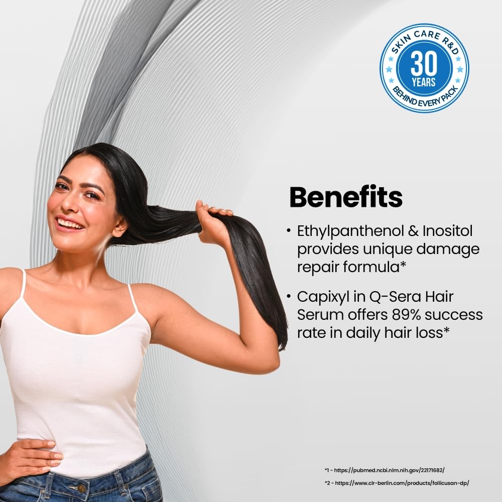 Q-Sera ORIGINAL Hair Serum (60 ml Pack) – Dermatologist-Recommended | Quicker Hair Fall Control solution | Strengthens Roots, and Promotes Thicker, Healthier Hair | Proven Choice| Superior over Redensyl , Procapil 3% & Capilla Longa Combinations |For Men