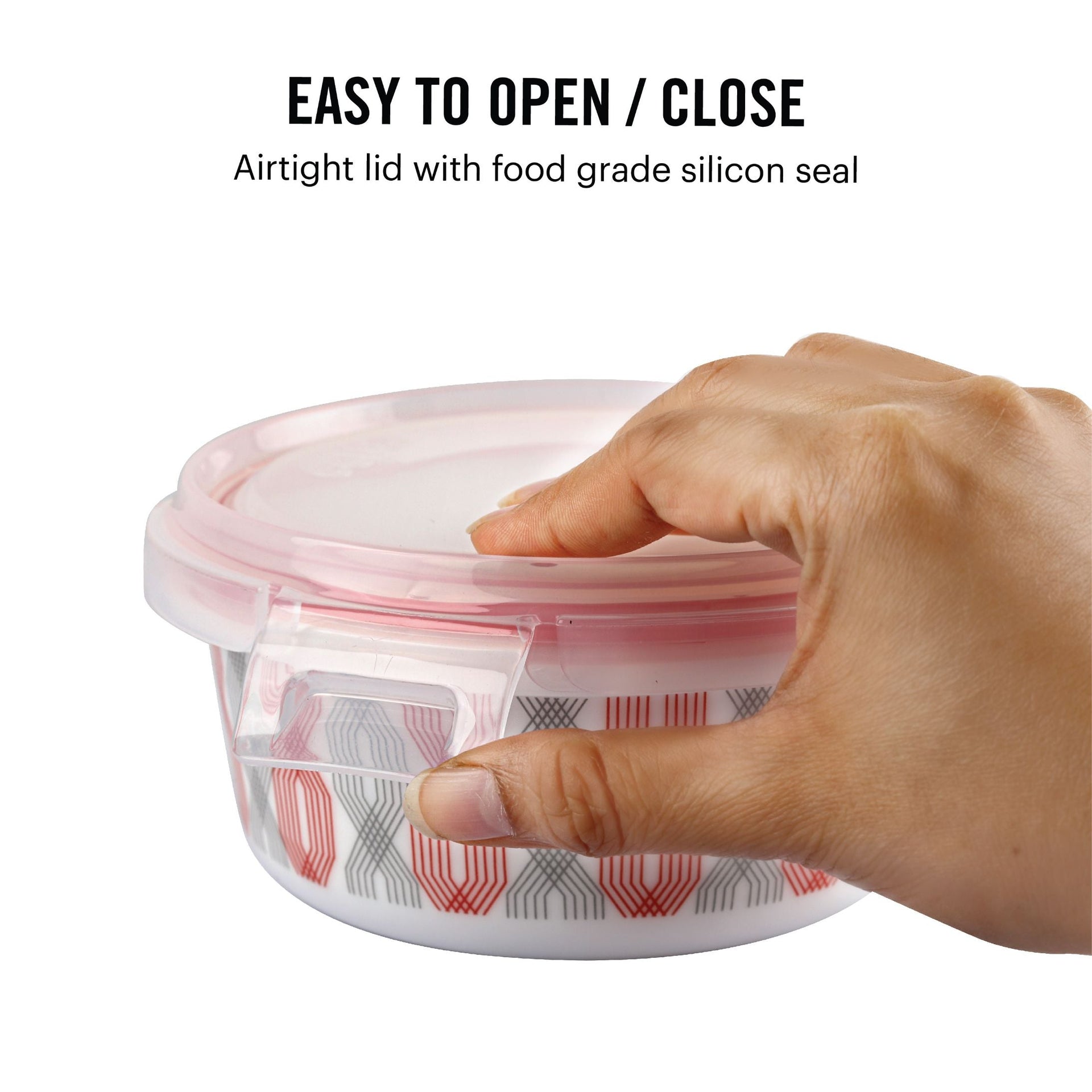 The Cello Red Trellis Opalware Lunch Box with Jacket is designed to enhance your dining experience. Crafted from non-see-through Opal Glass, it guarantees privacy by preventing any unwanted glances into your meal. Its food-grade quality ensures safety, and it's a breeze to clean, compatible with both microwave and dishwasher use.