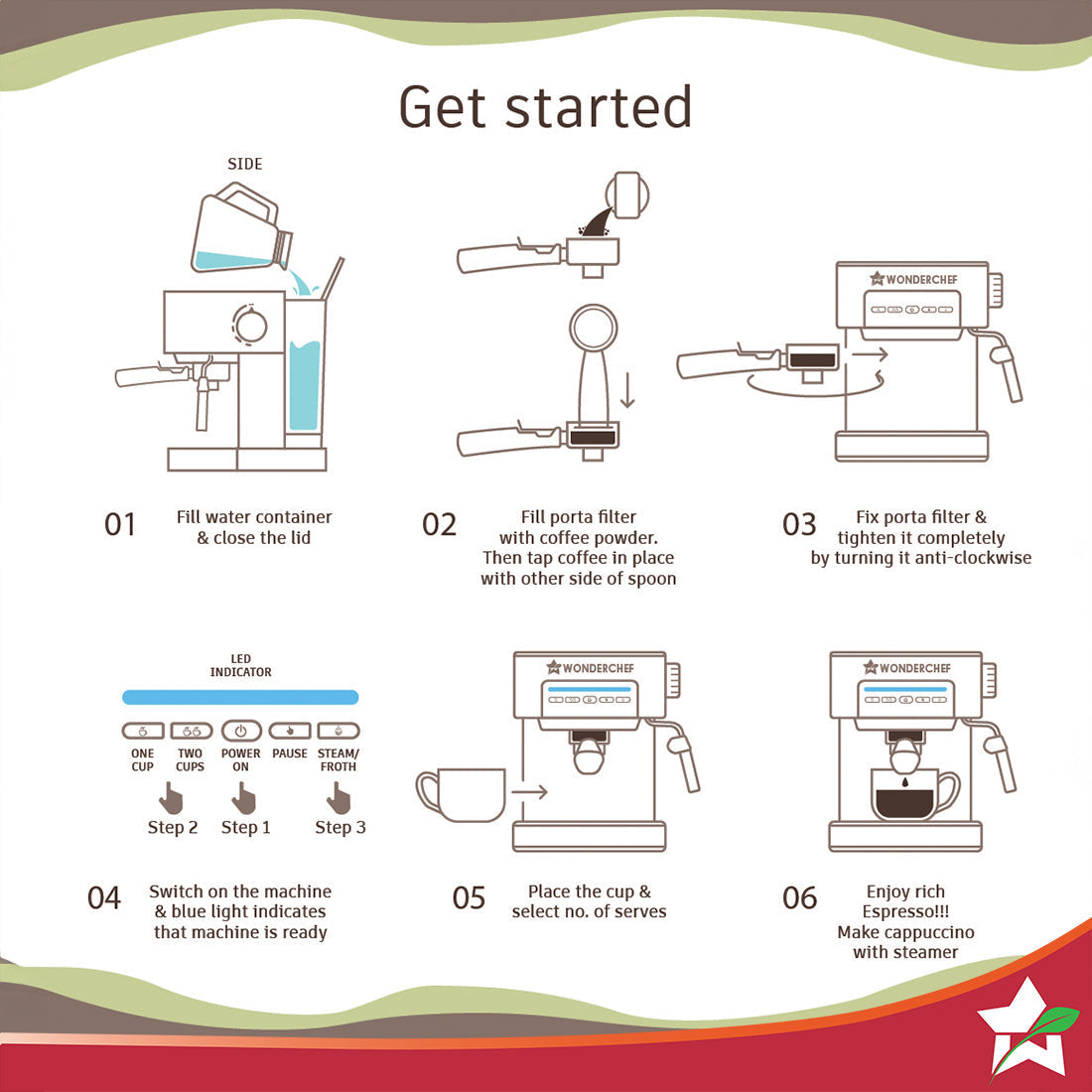 Get coffee house quality espresso, cappuccino, latté, macchiato or ristretta at home with professional grade 20 Bar Coffee Machine. For coffee lovers, a freshly brewed coffee cup is the ideal start to their mornings! When it comes to coffee aficionados, taste is everything. The right coffee machine can make this a delightful experience. Wonderchef Regalia Espresso Coffee Maker with 20 Bar (15 times atmospheric pressure) is a great choice to have that perfect coffee every time in the comfort of your home.